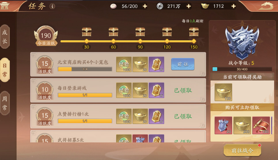 扫荡一次300经验,扫荡10次就是3000经验,而且还能获得武将进阶材料以及升级材料等等。而前期体力很缺,有条件的前期元宝可以直接在商城里面购买包子等级升得越快,就能解锁越多的玩法、资源,建立早期优势。