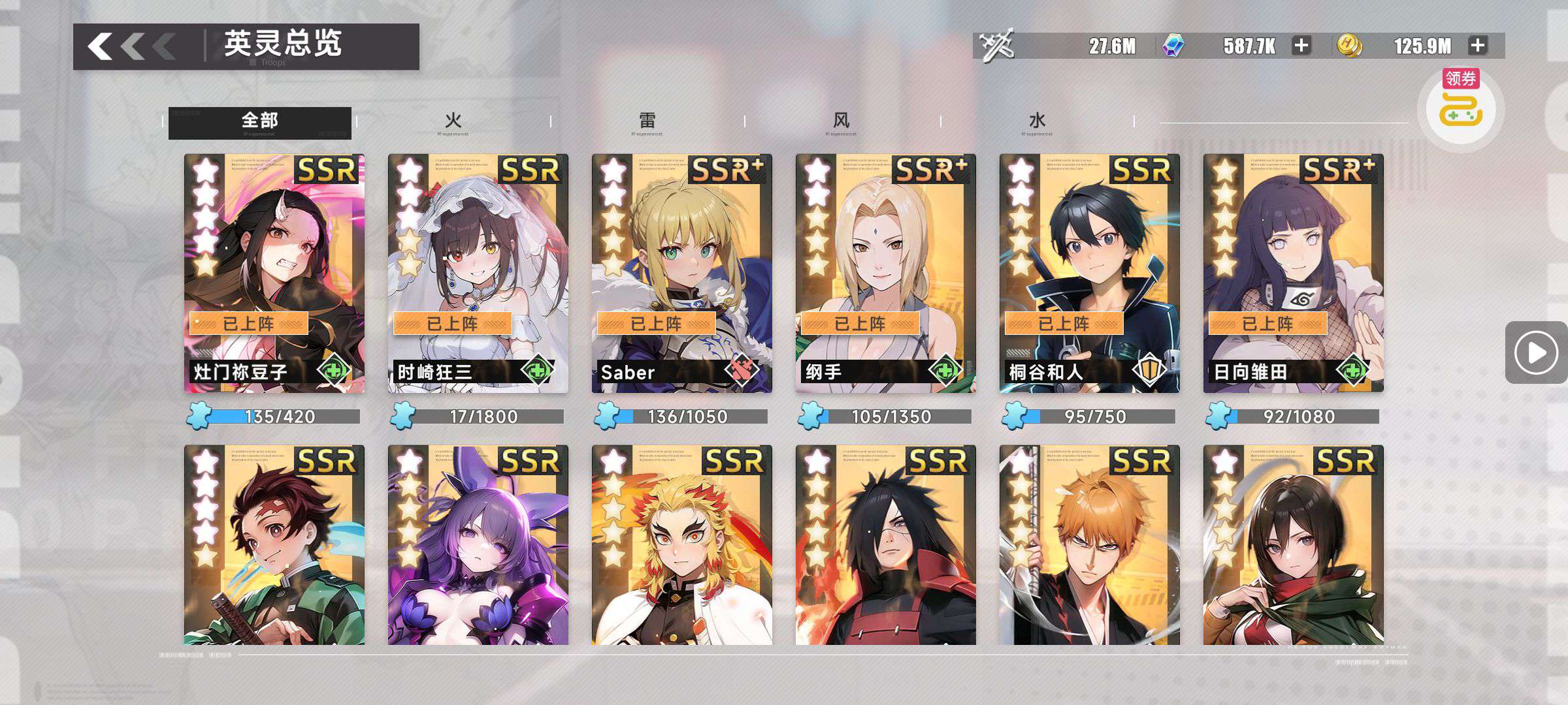 角色等级刚刚满级,还有2万神渝币,有夏娜,金木研,纳兹的专属魂器,限时魂器也有700抽,仓库里面东西也很多可砍价
