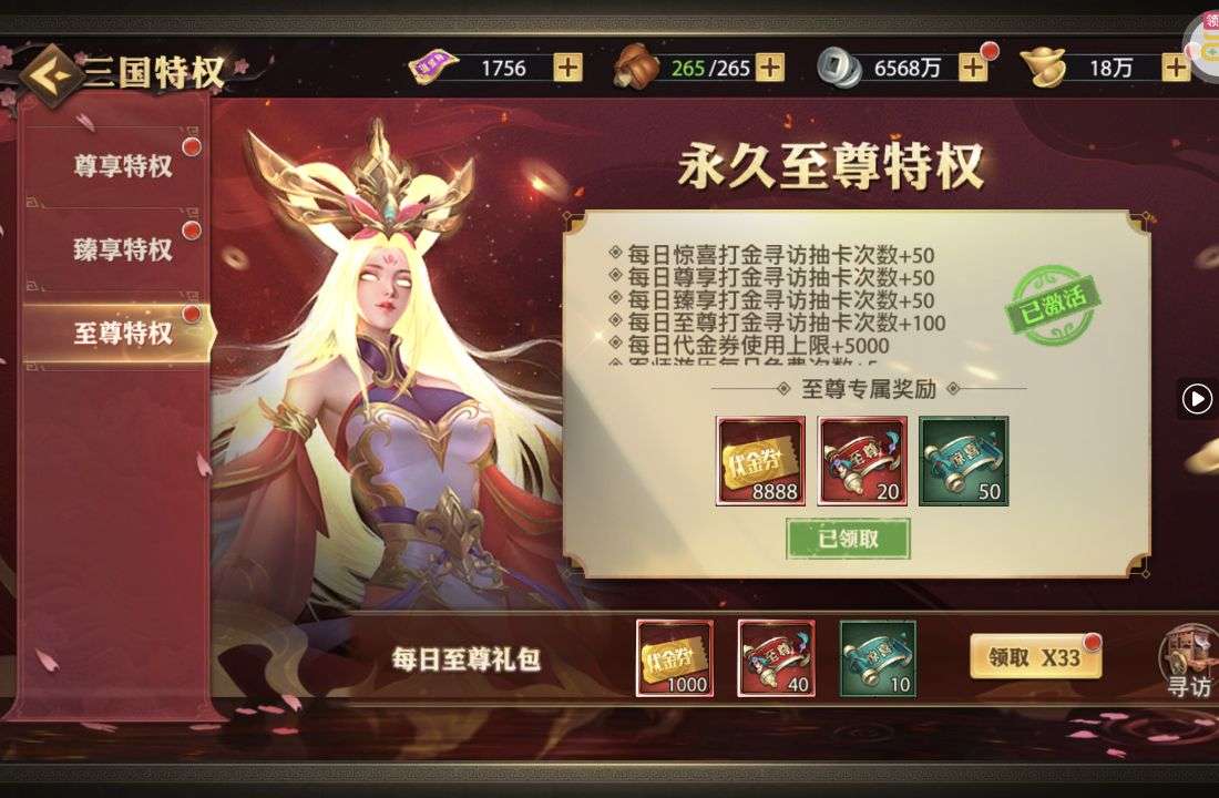 夺宝券*1、比武令*1、5星随机将魂*10(每个账号限领一次)