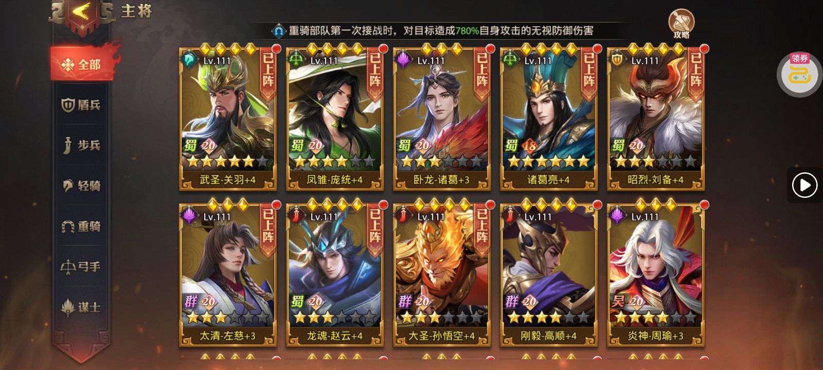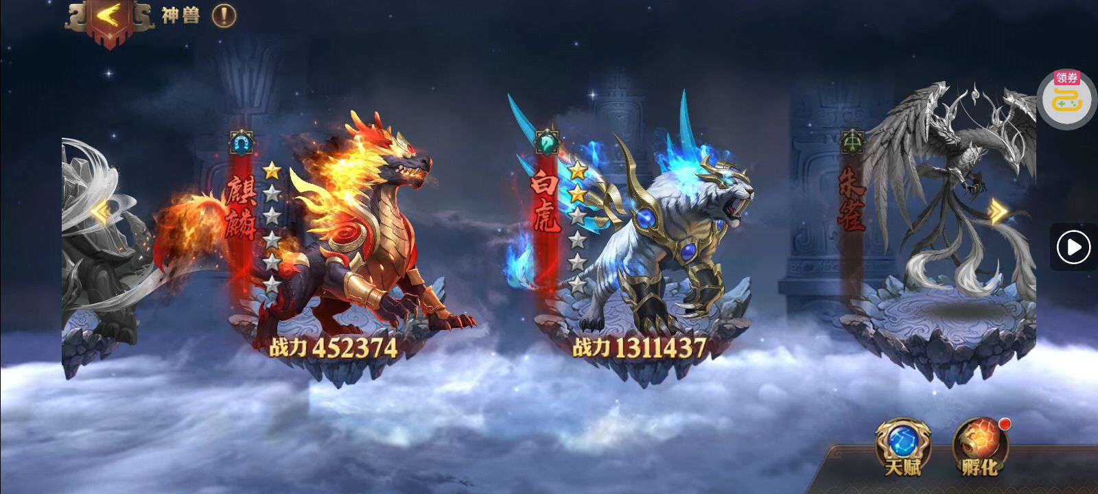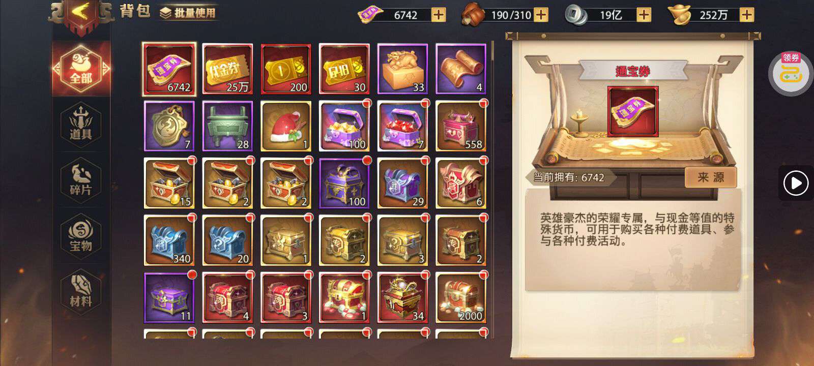 夺宝券*1、比武令*1、5星随机将魂*10(每个账号限领一次)