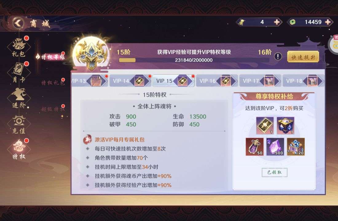 夺宝券*1、比武令*1、5星随机将魂*10(每个账号限领一次)
