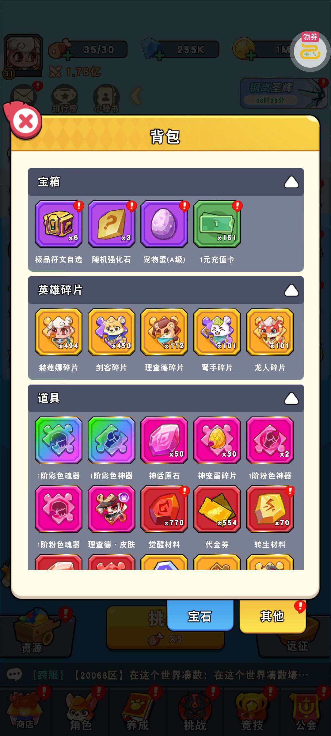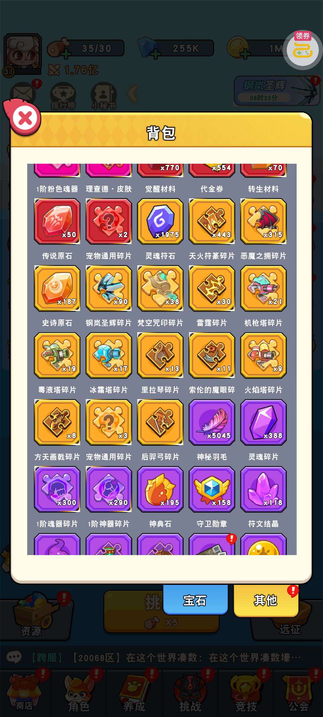 符文已升满,雷霆已升满,装备已升满,宝石已升满,其它一堆东西。