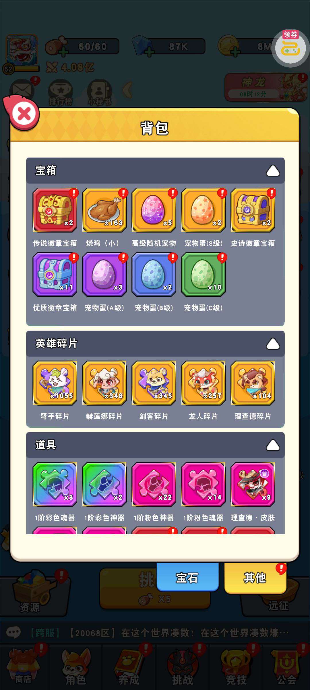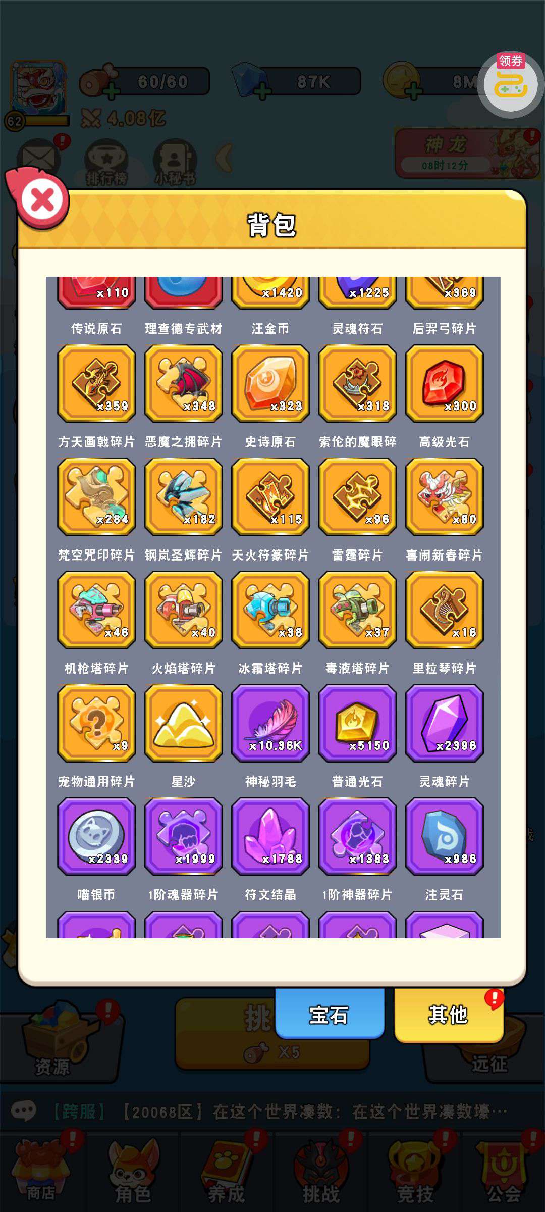 符文已升满,雷霆已升满,装备已升满,宝石已升满,其它一堆东西。