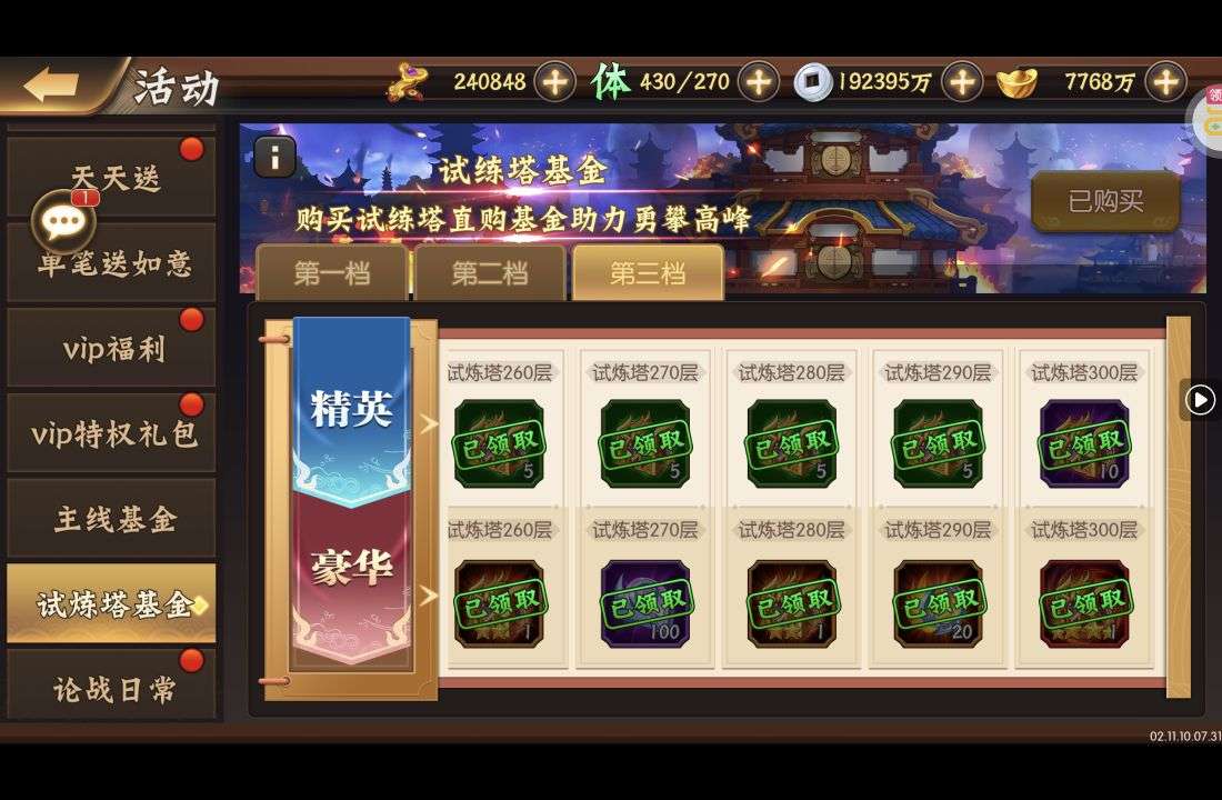 夺宝券*1、比武令*1、5星随机将魂*10(每个账号限领一次)