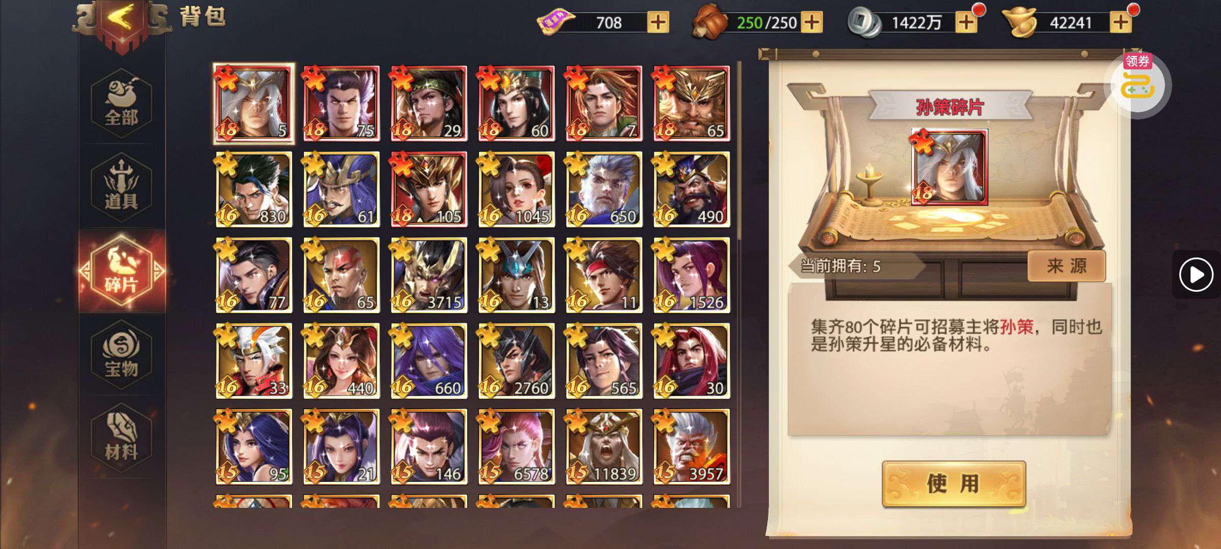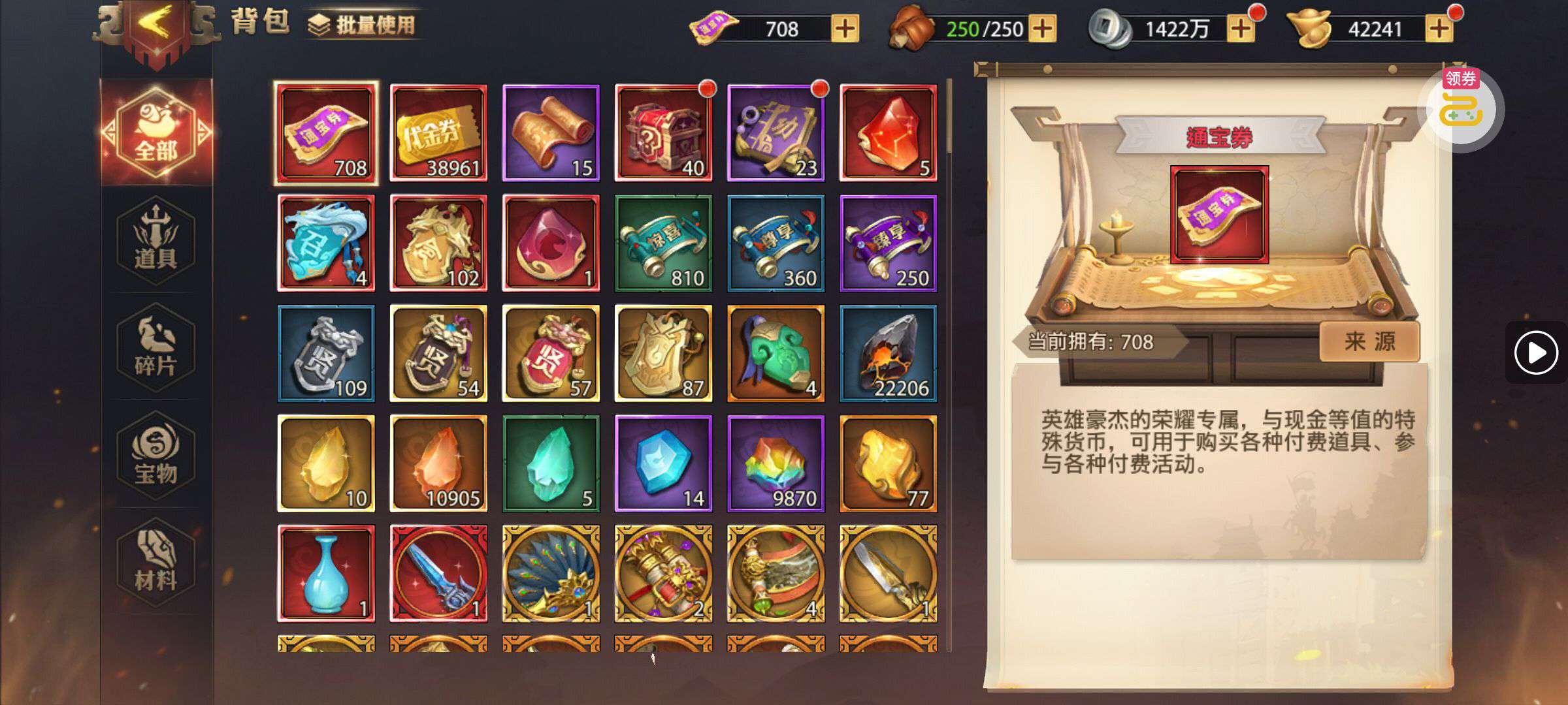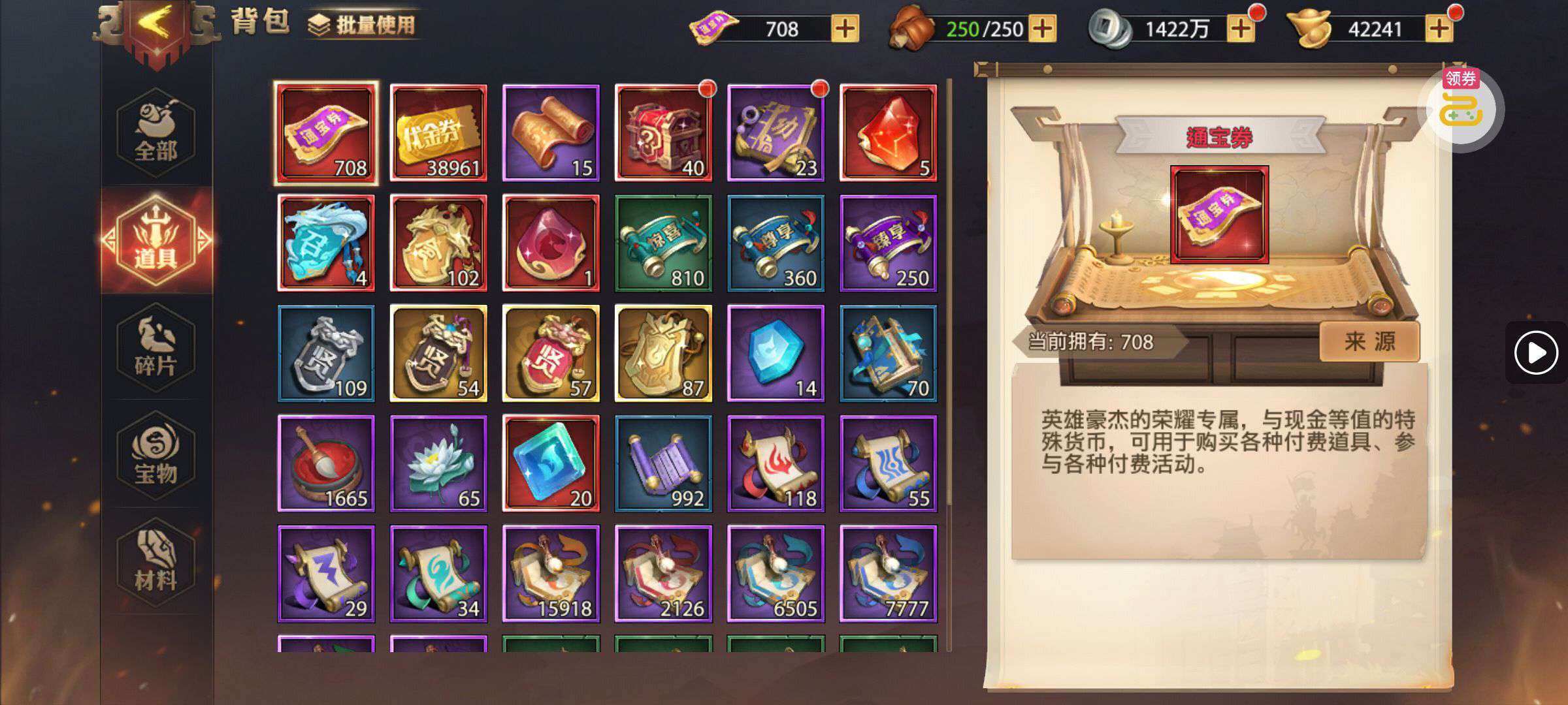 夺宝券*1、比武令*1、5星随机将魂*10(每个账号限领一次)