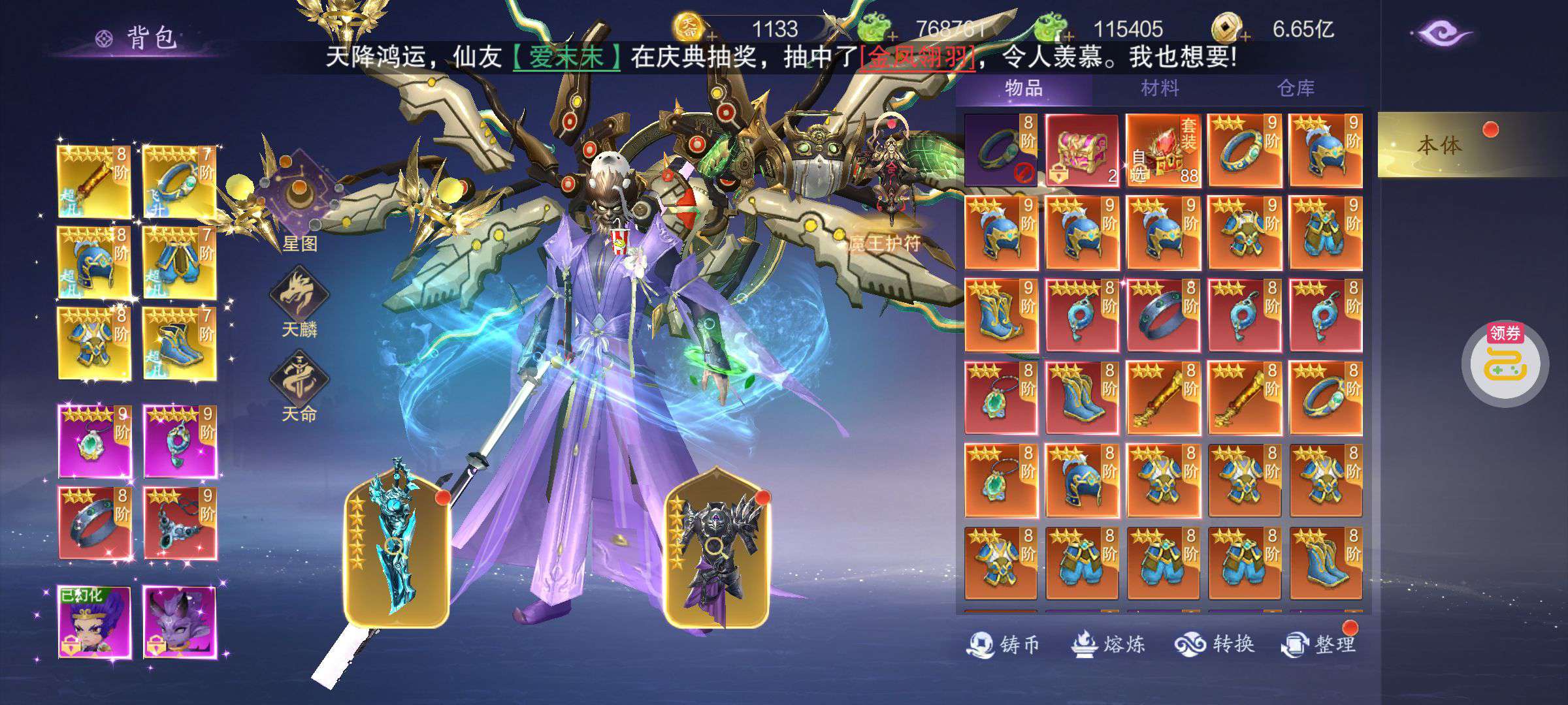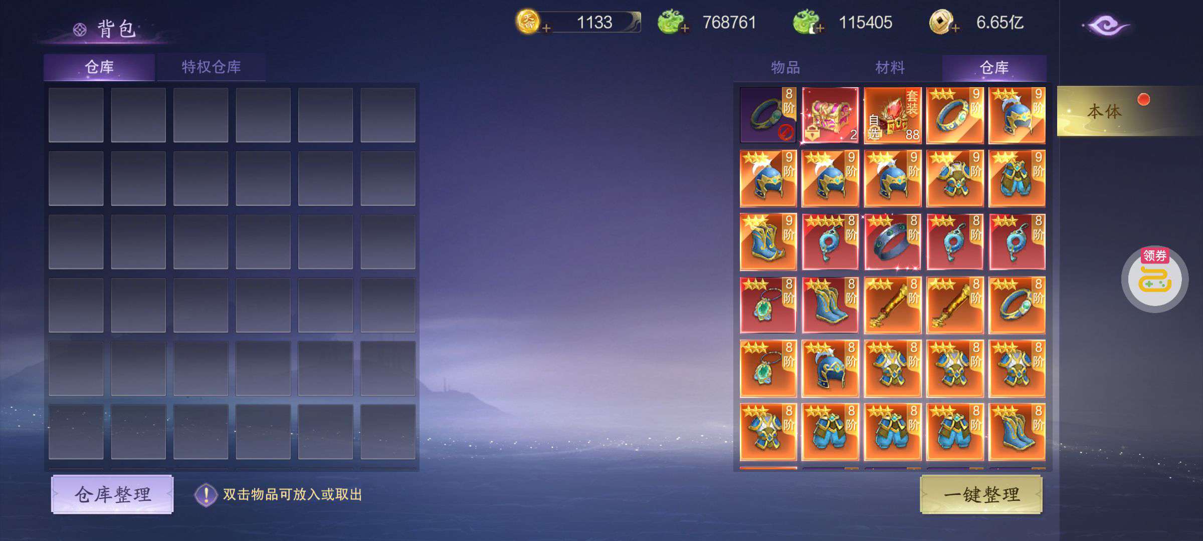 芯片熔炼石*1、离子探针*50、净化金属*50(每个账号限领一次)