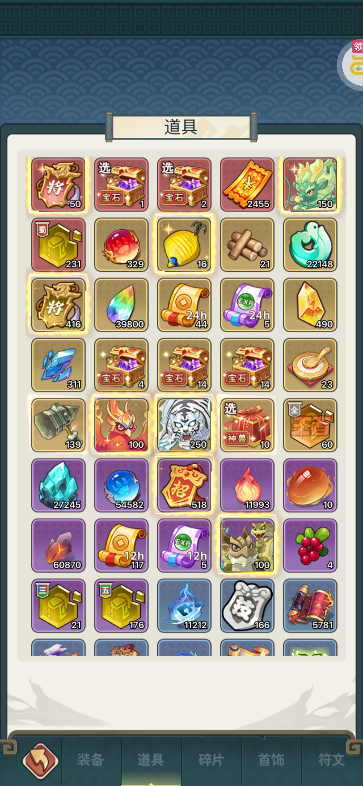 夺宝券*1、比武令*1、5星随机将魂*10(每个账号限领一次)