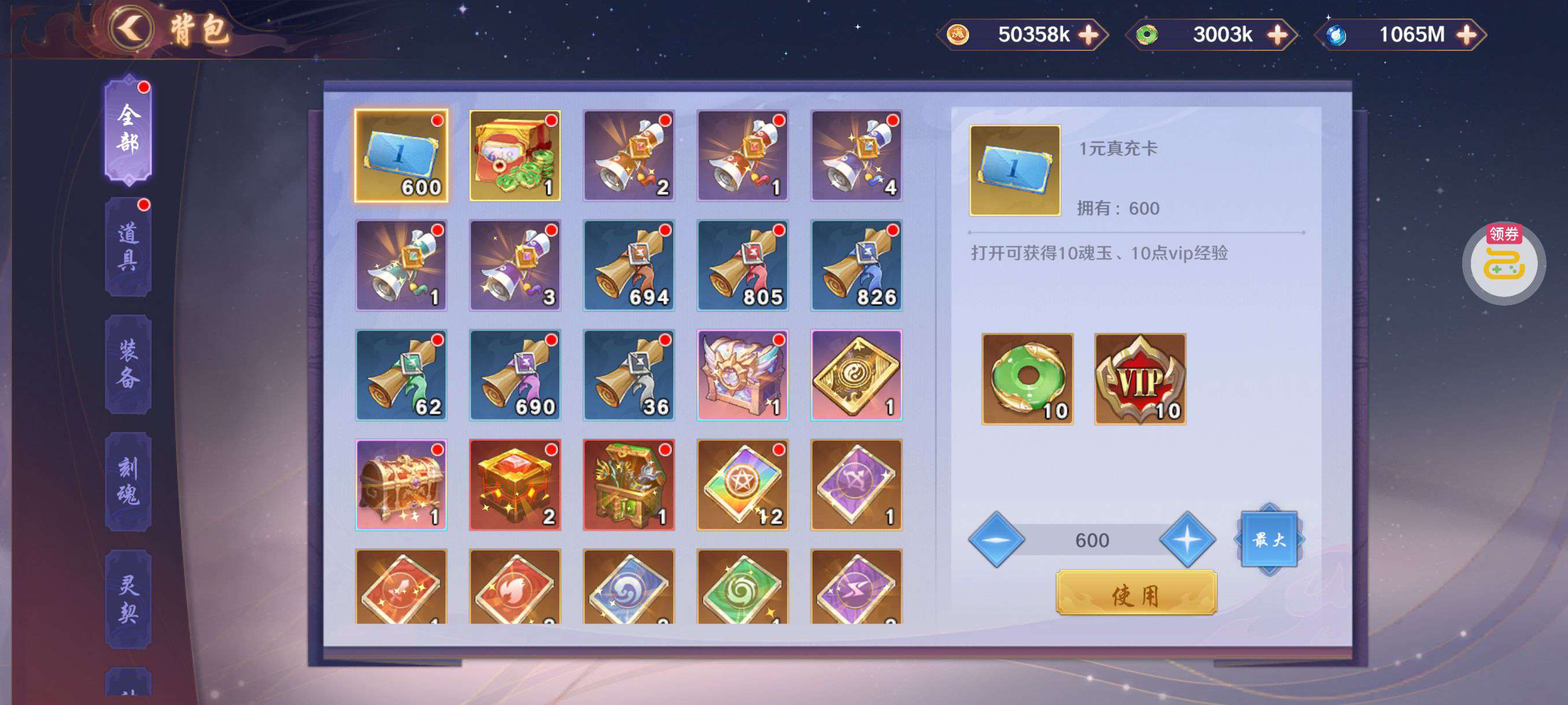 夺宝券*1、比武令*1、5星随机将魂*10(每个账号限领一次)
