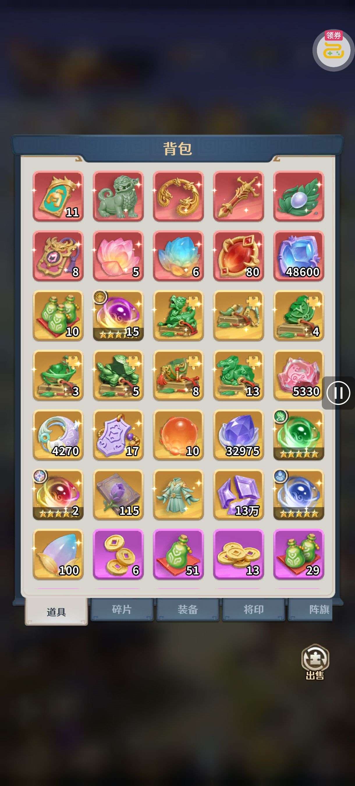 夺宝券*1、比武令*1、5星随机将魂*10(每个账号限领一次)