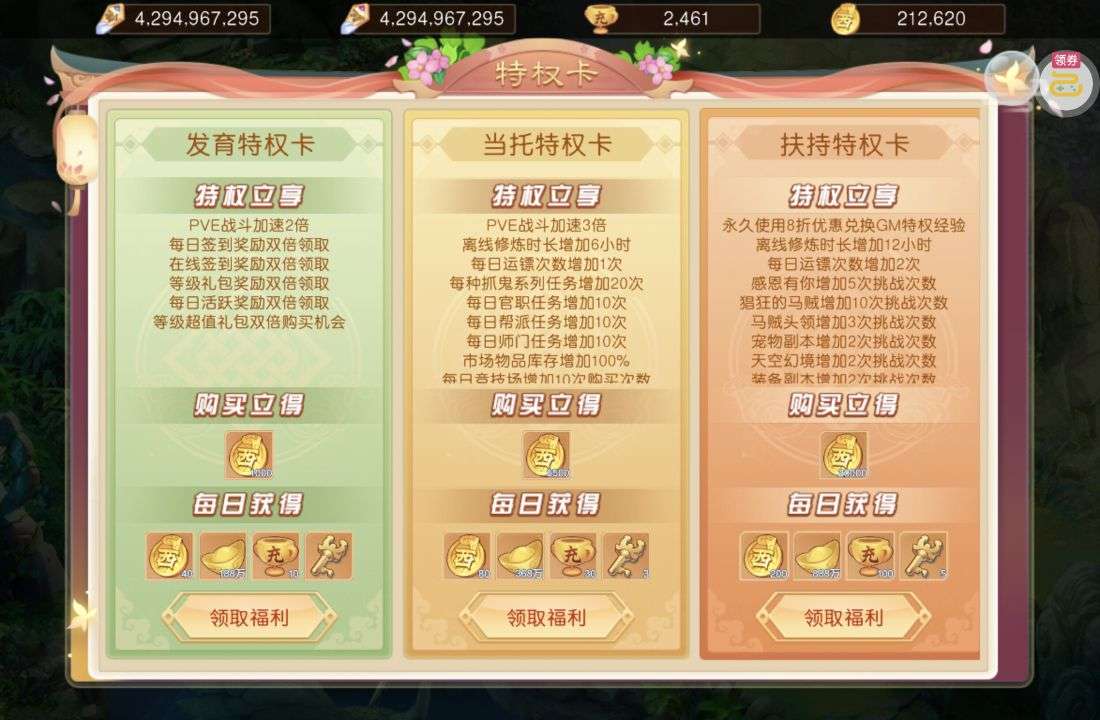 夺宝券*1、比武令*1、5星随机将魂*10(每个账号限领一次)