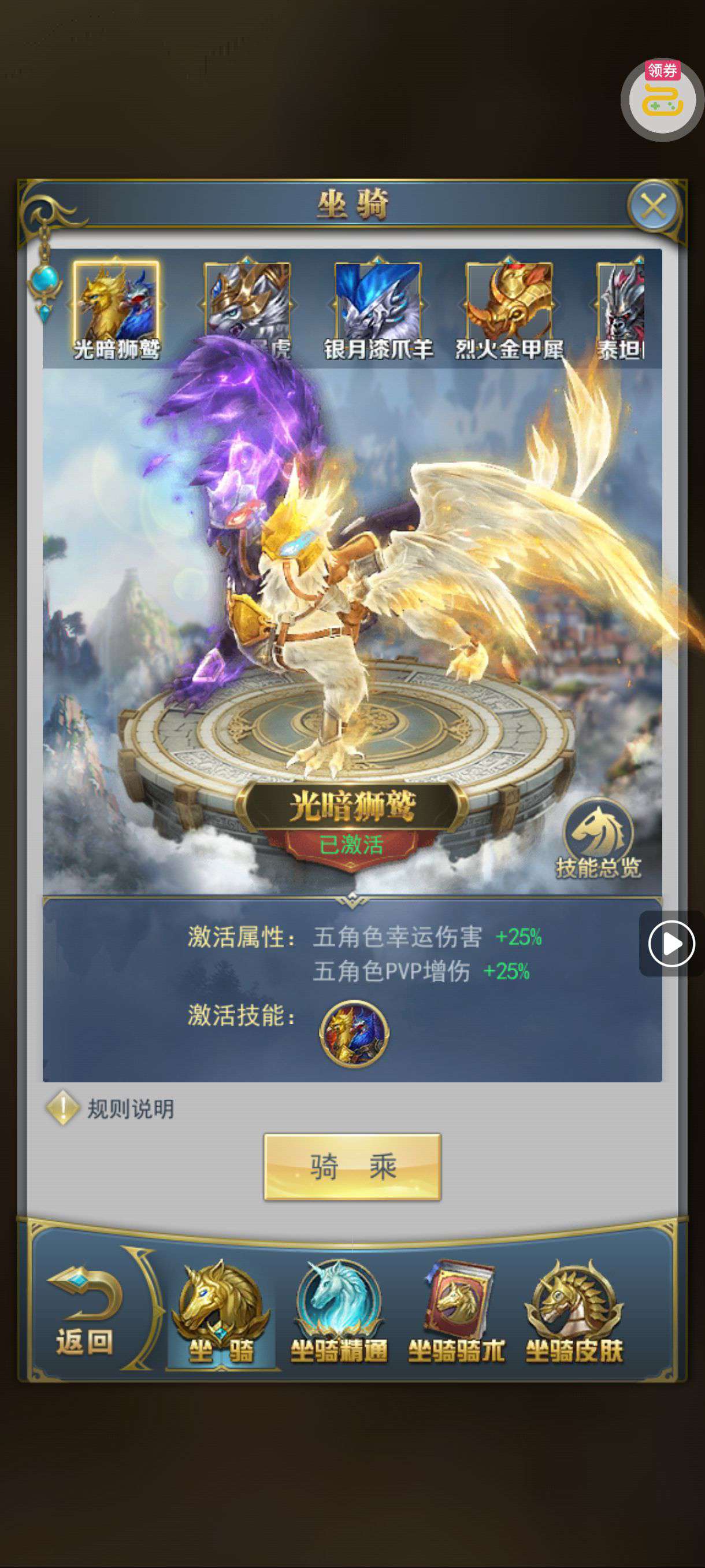 夺宝券*1、比武令*1、5星随机将魂*10(每个账号限领一次)