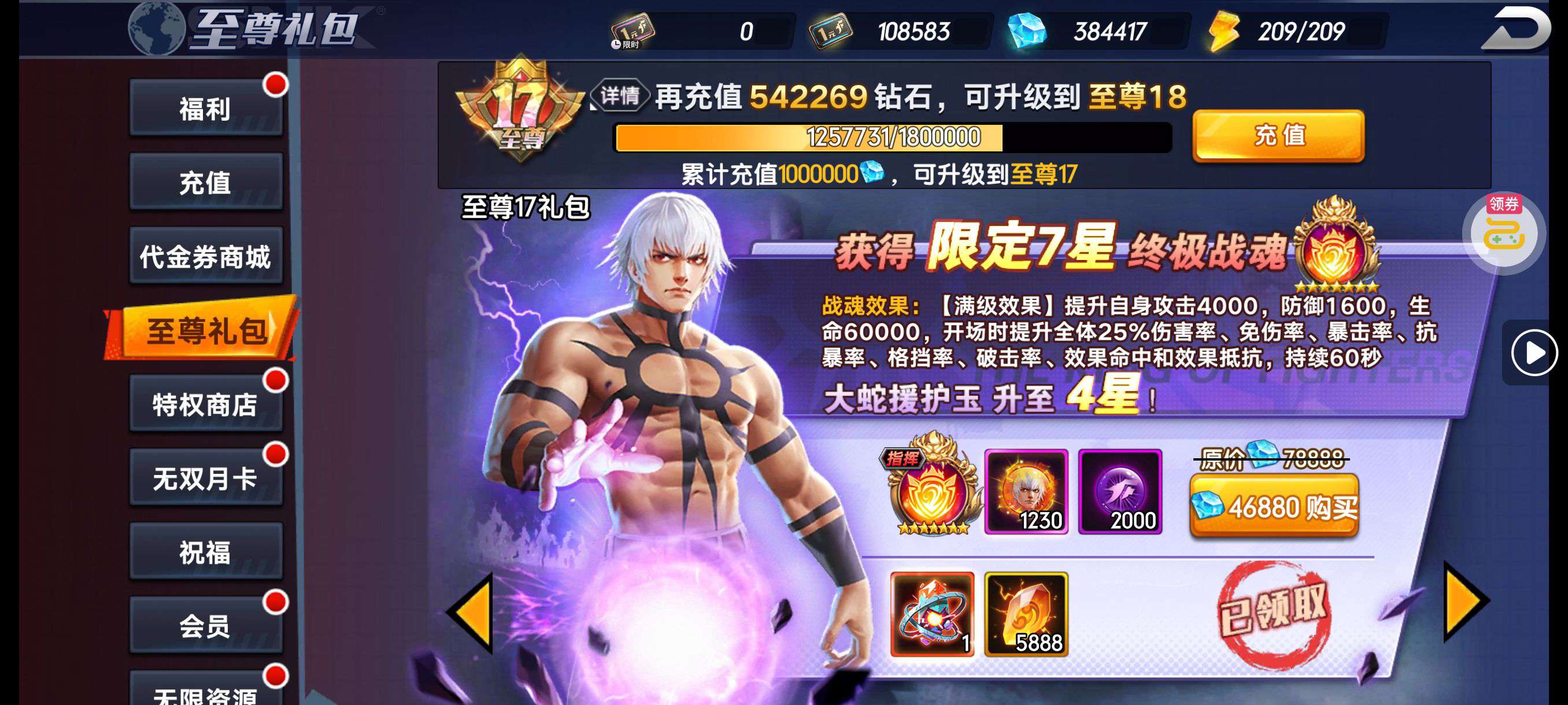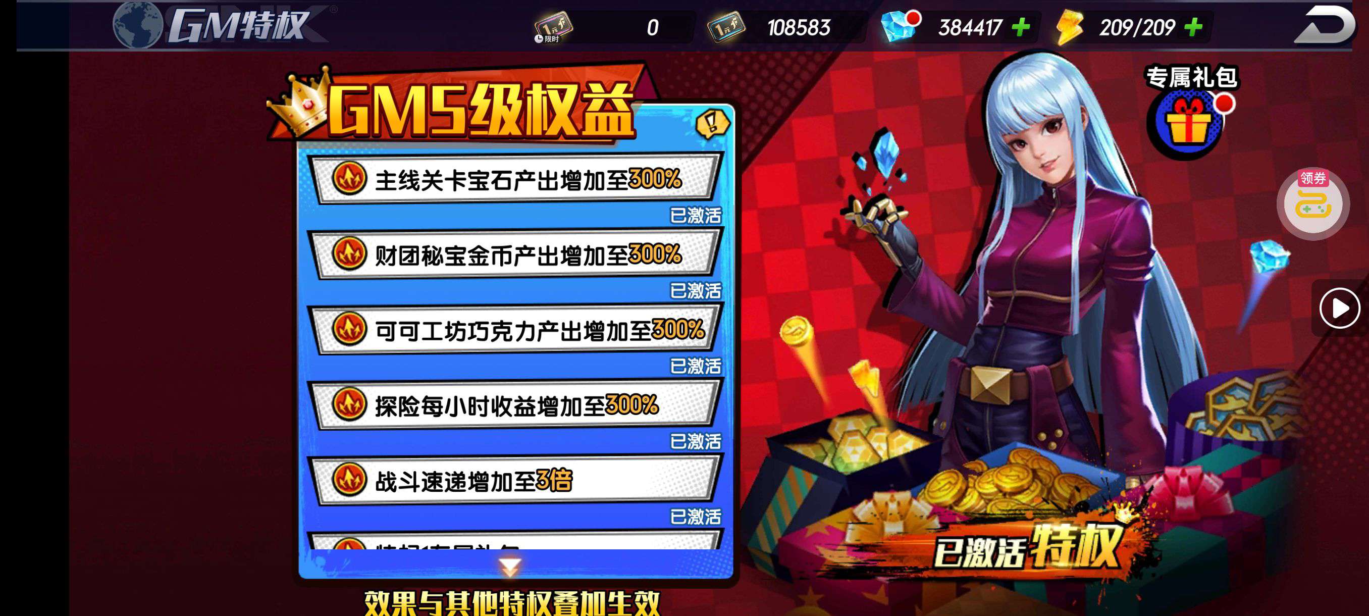 超多好东西,战力也嘎嘎厉害,全部 vip 升满,买了零氪继续玩就行。