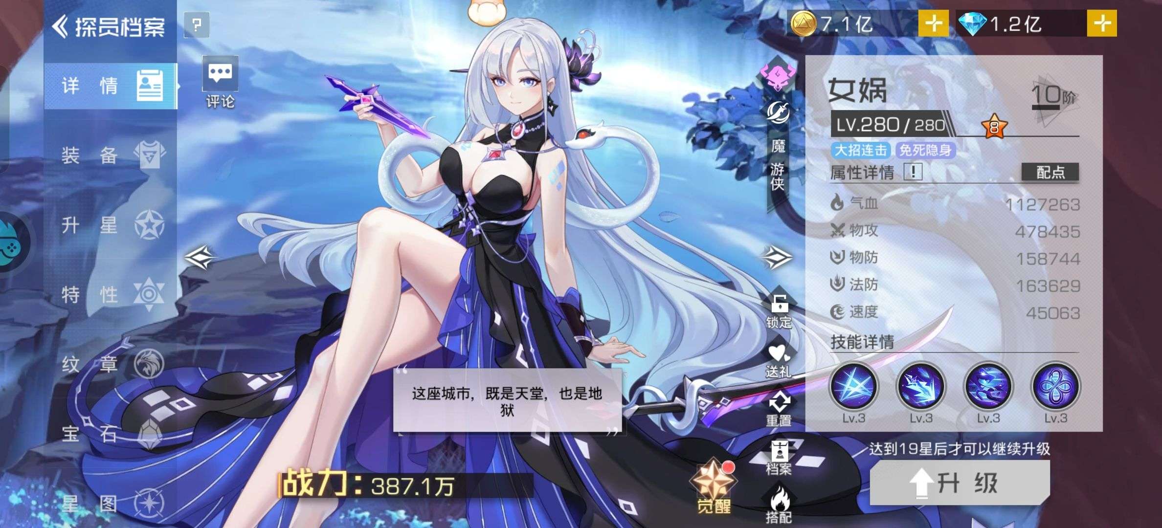 氪探基本都能到19星,女娲18星,幻刺20星,这个就算是过渡了新手期吧。