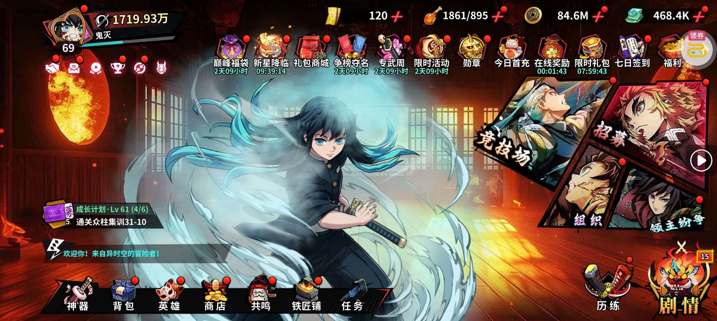 夺宝券*1、比武令*1、5星随机将魂*10(每个账号限领一次)