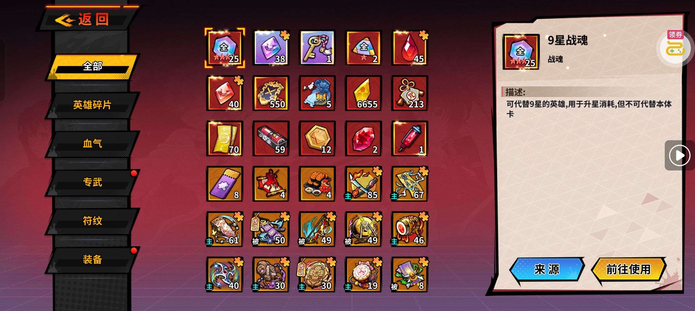 夺宝券*1、比武令*1、5星随机将魂*10(每个账号限领一次)