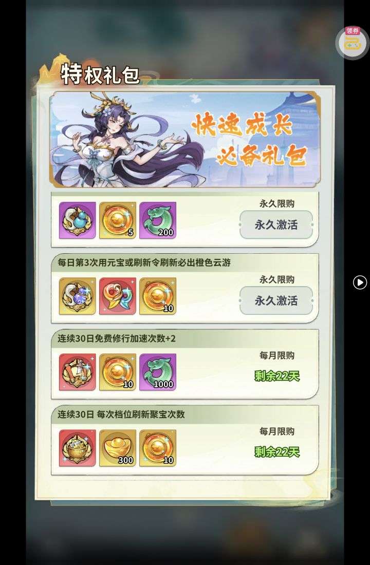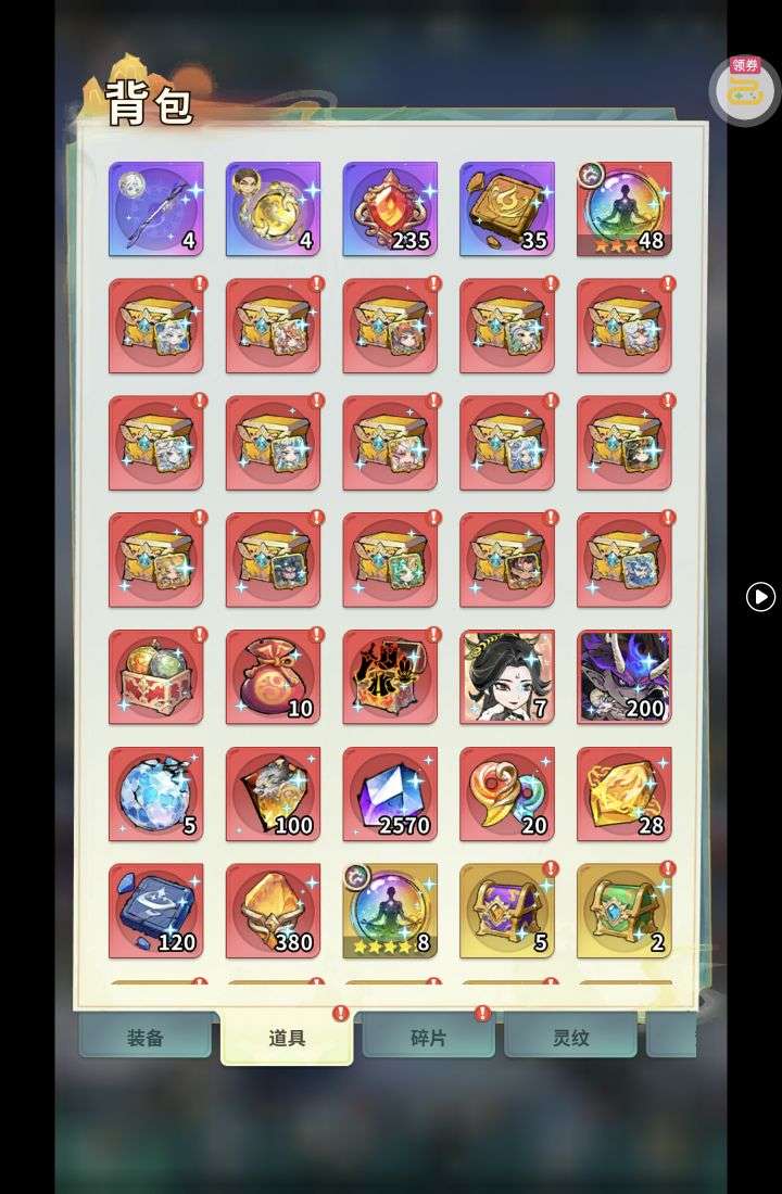 夺宝券*1、比武令*1、5星随机将魂*10(每个账号限领一次)