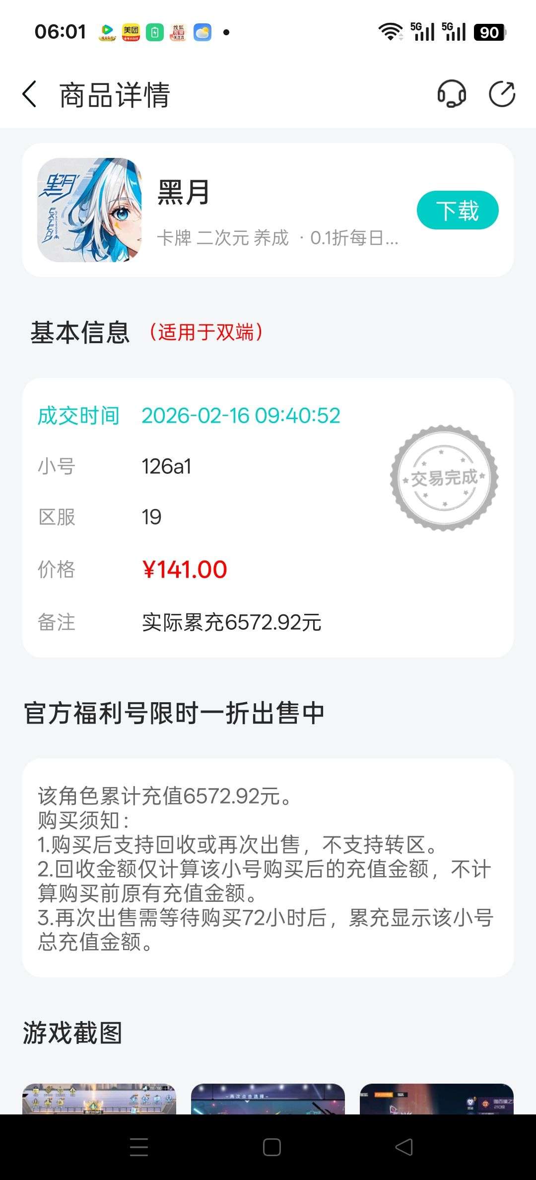 141买的实际充值6572,具体看截图