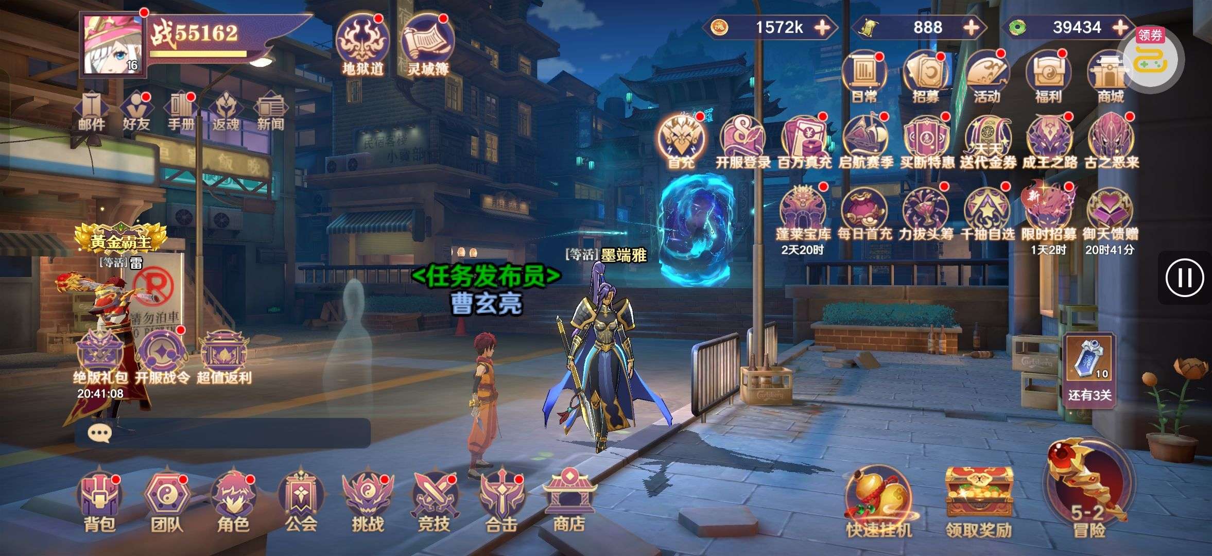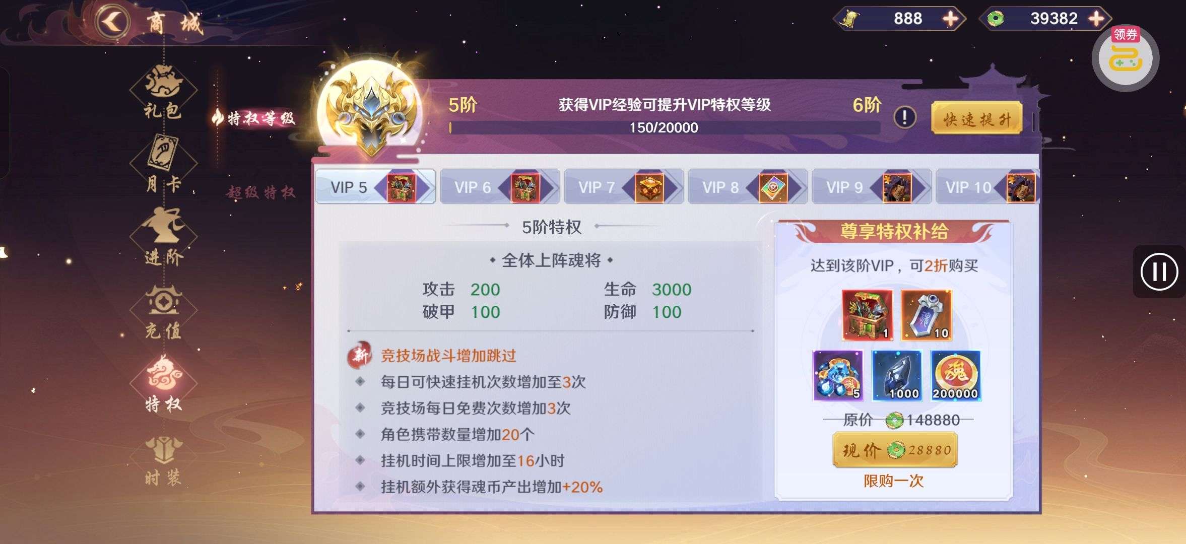 夺宝券*1、比武令*1、5星随机将魂*10(每个账号限领一次)