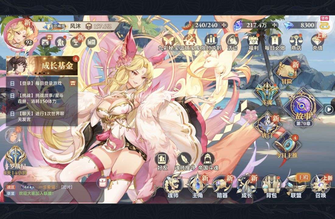魂晶*888,魂师召唤券*10,武魂水晶*5(每个账号限领一次)