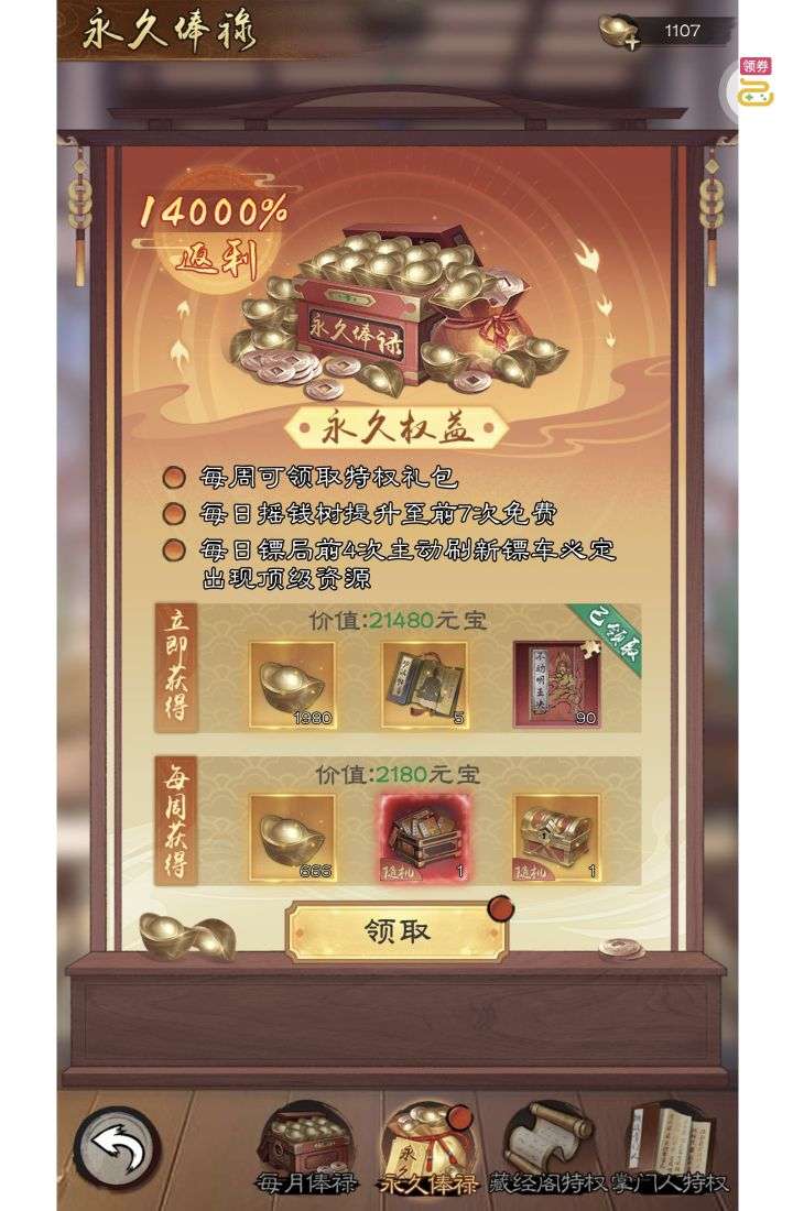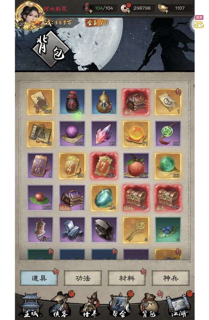 夺宝券*1、比武令*1、5星随机将魂*10(每个账号限领一次)