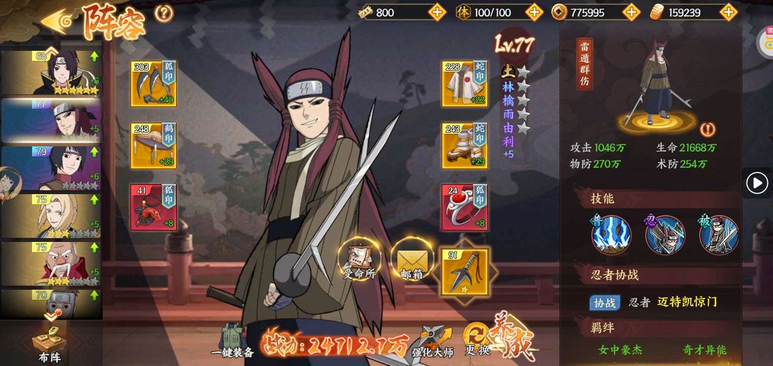 战斗力第一,164亿战斗力。季卡会员,有赤金忍者小南,兜;紫金全套忍者。账号金币有100万。养成材料n+