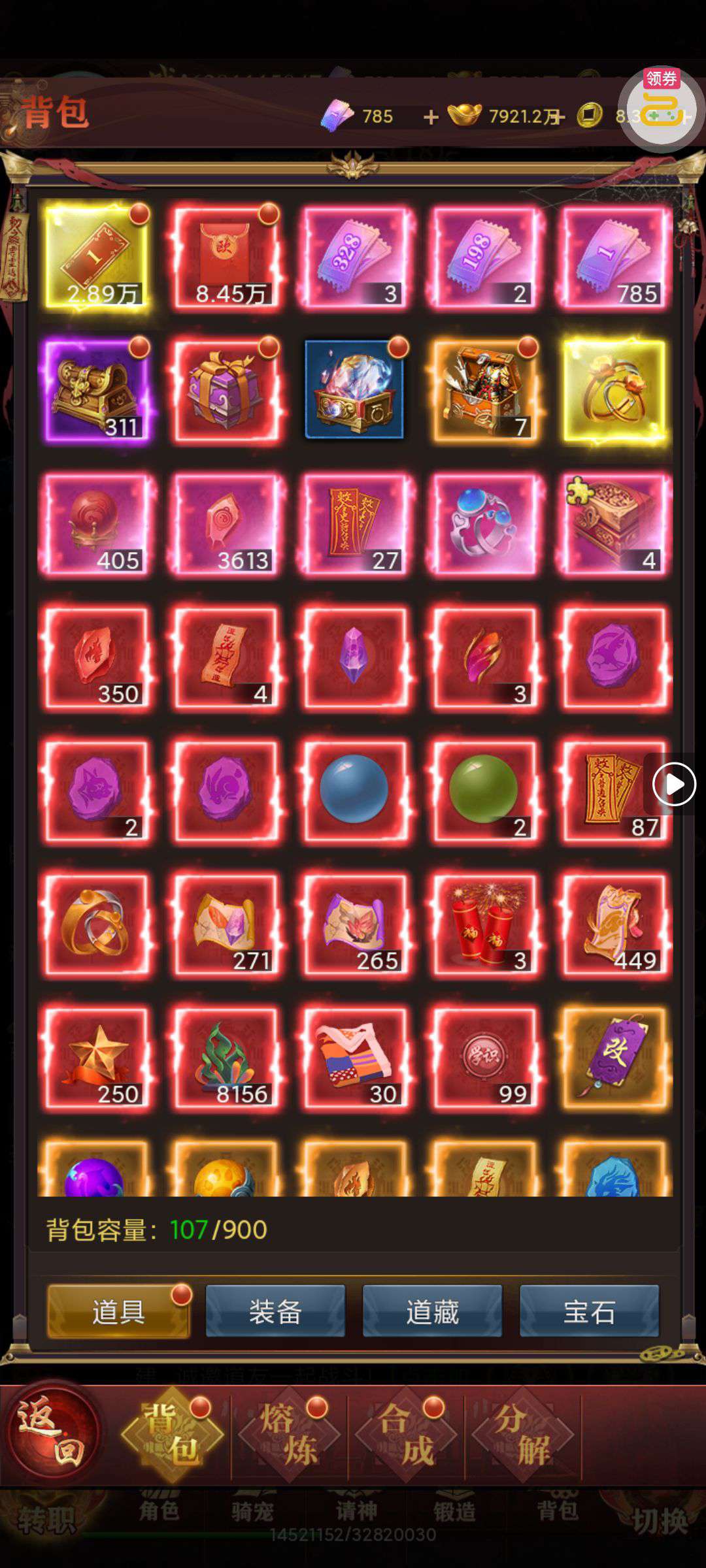 夺宝券*1、比武令*1、5星随机将魂*10(每个账号限领一次)