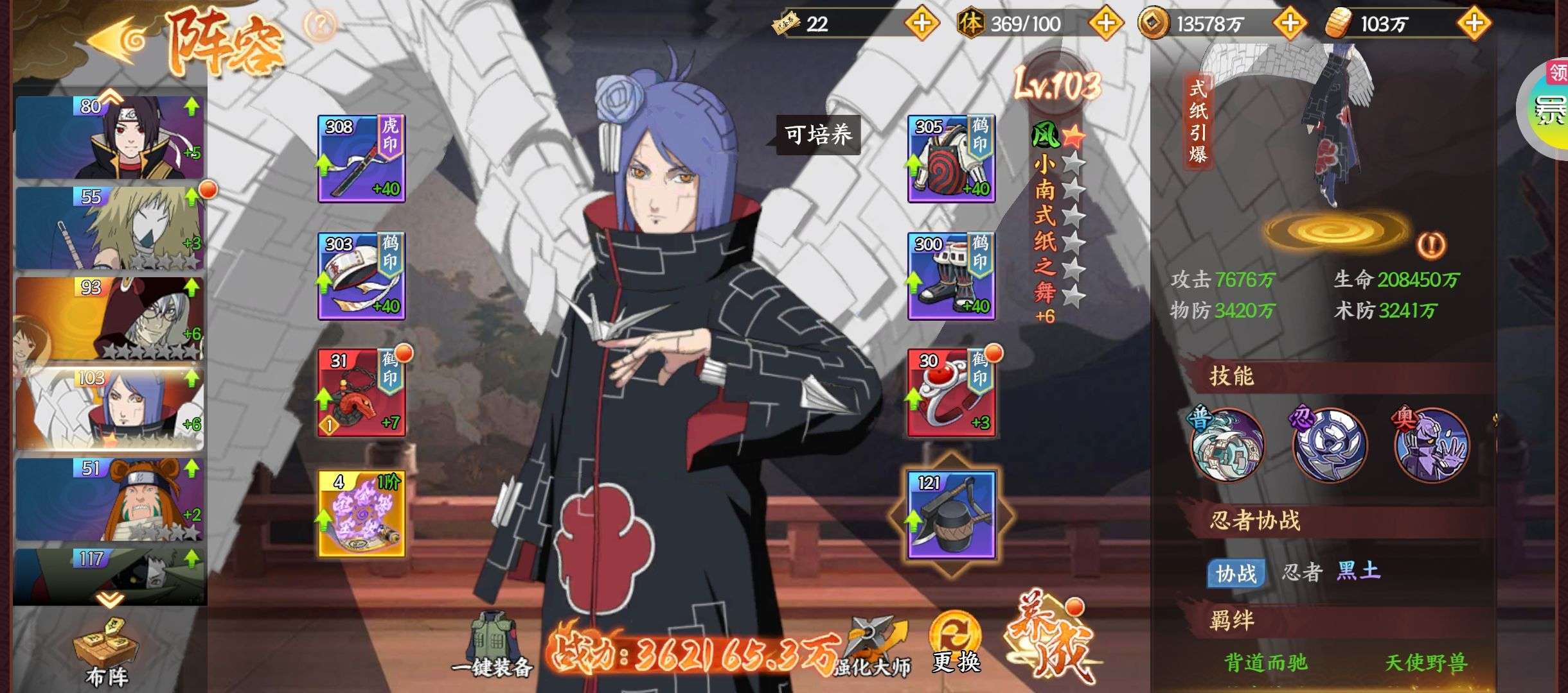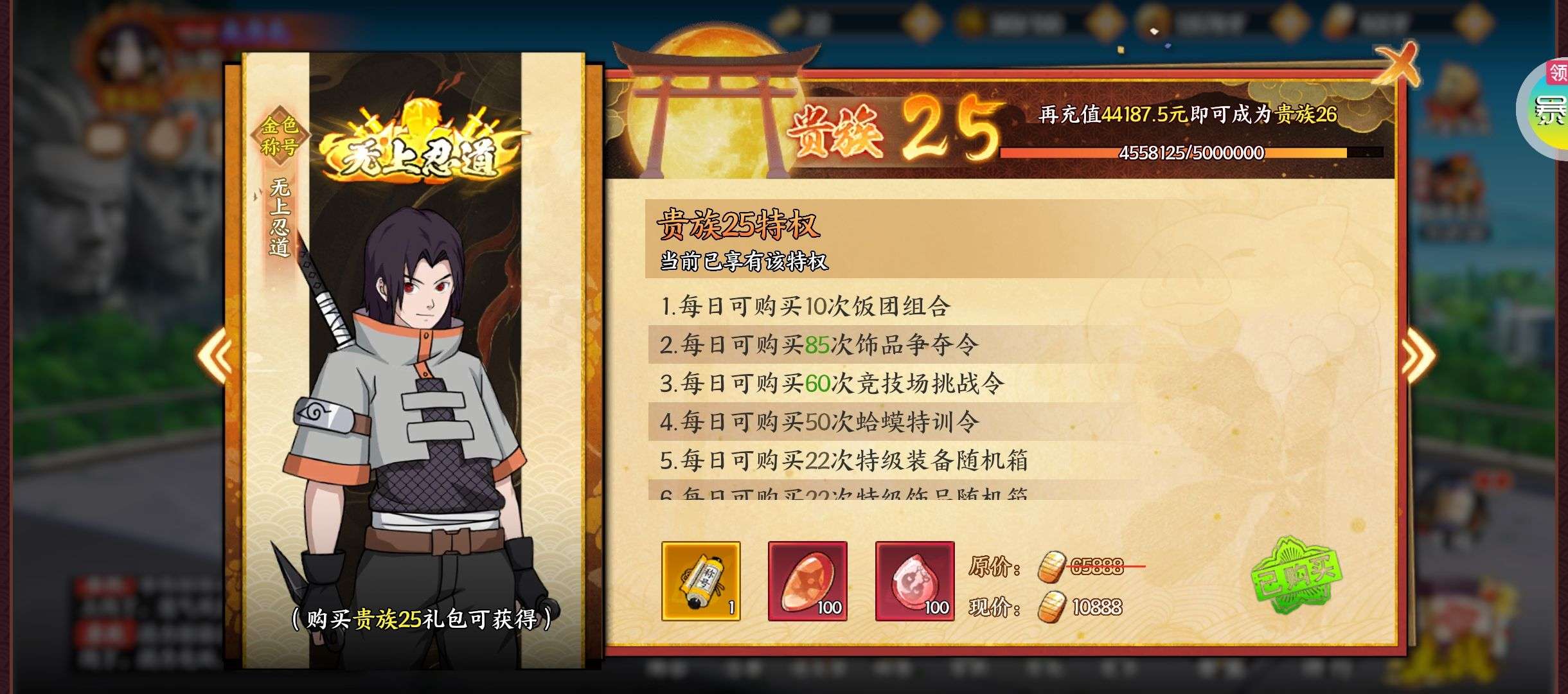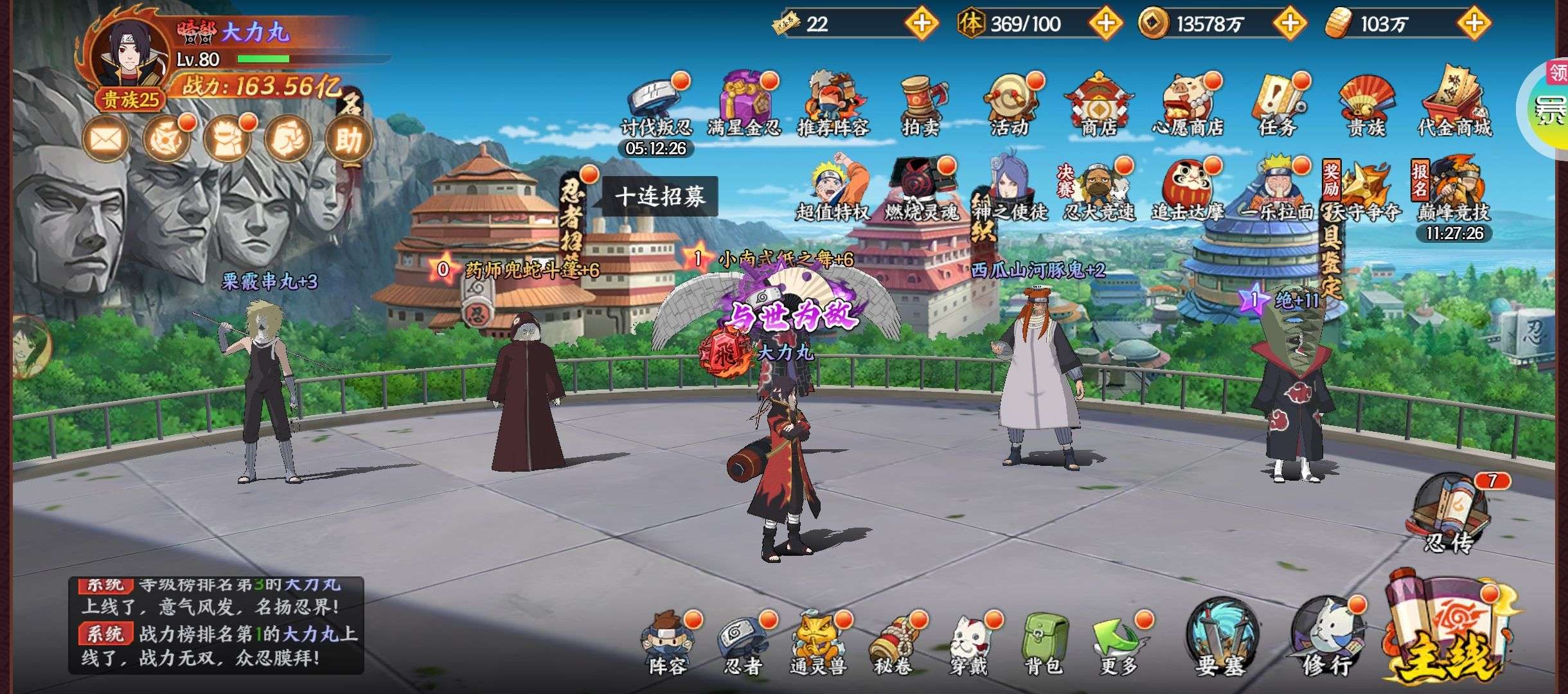 战斗力第一,164亿战斗力。季卡会员,有赤金忍者小南,兜;紫金全套忍者。账号金币有100万。养成材料n+