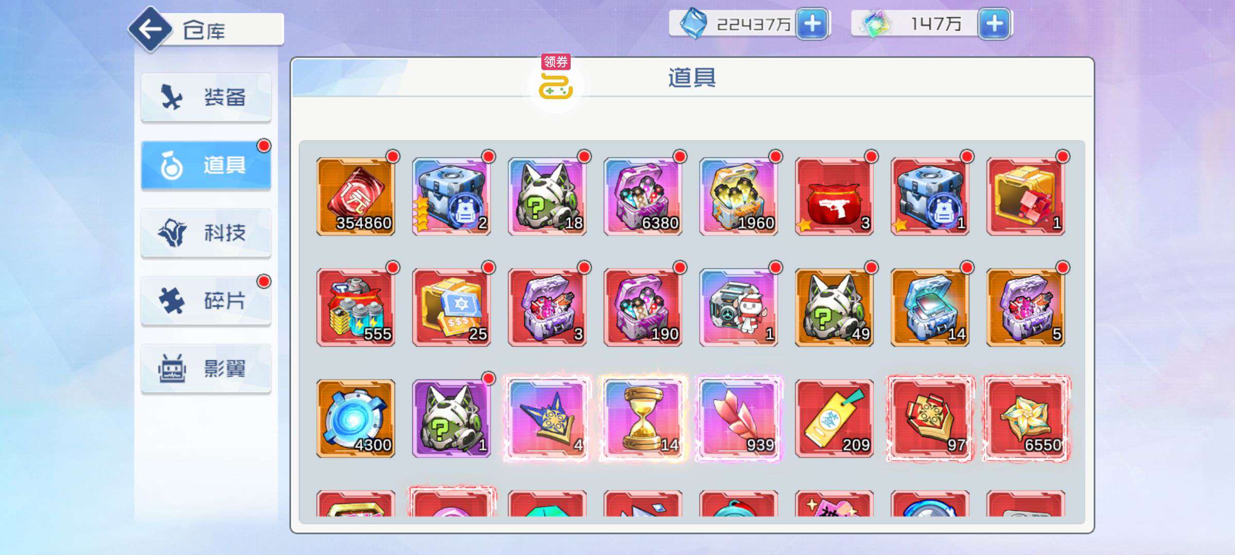 芯片熔炼石*1、离子探针*50、净化金属*50(每个账号限领一次)