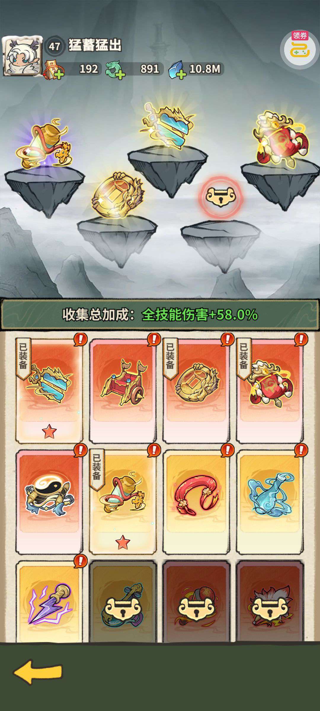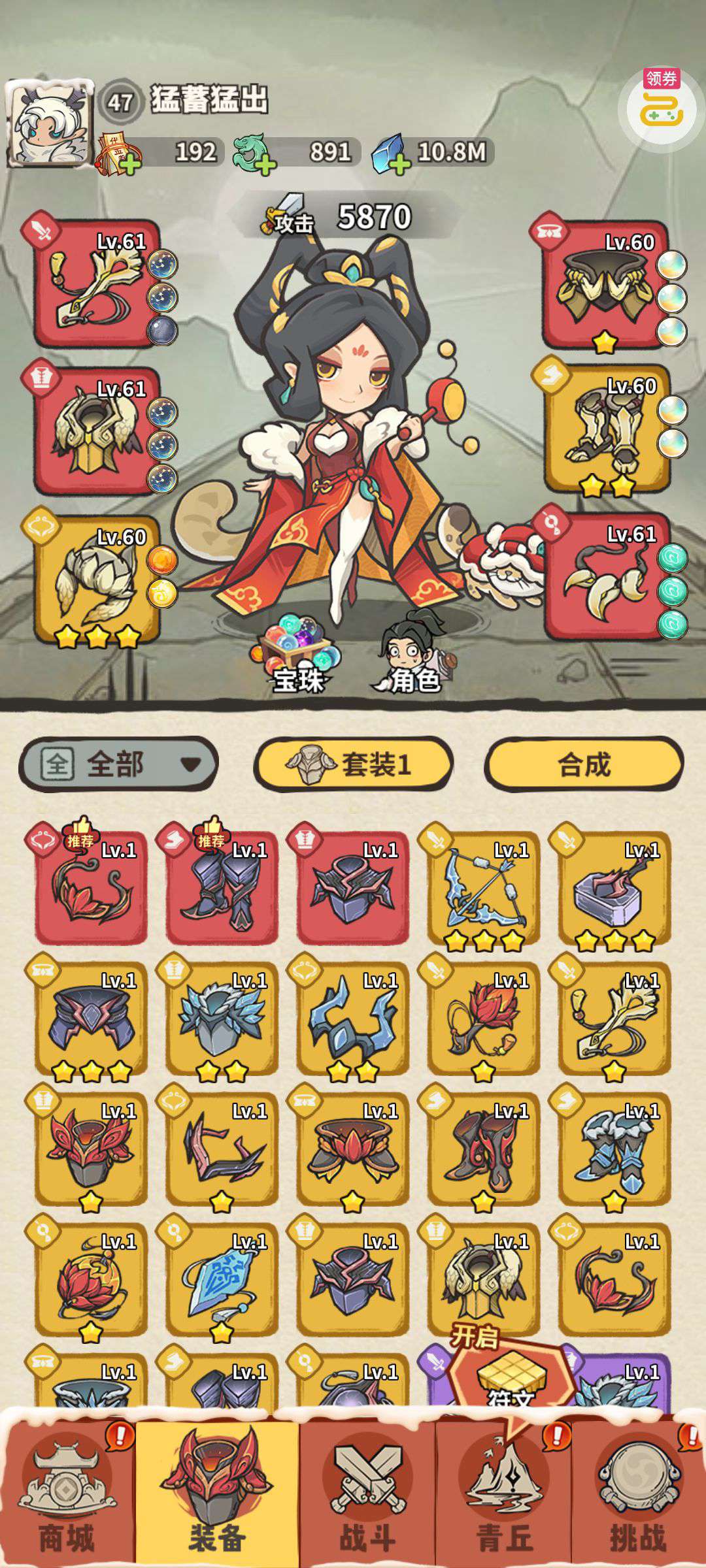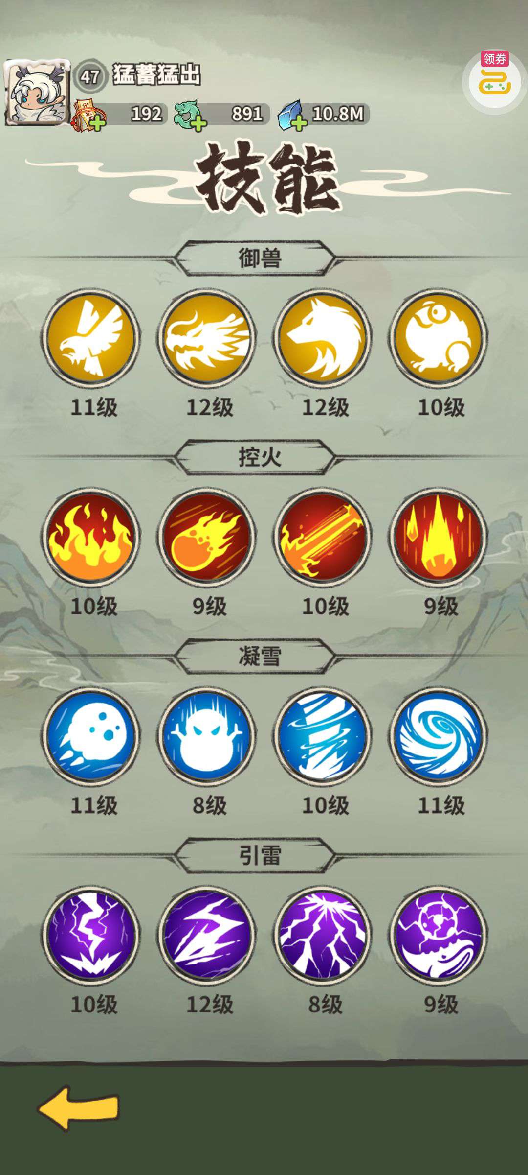 累积500多,特权卡5级,宝物神通都有