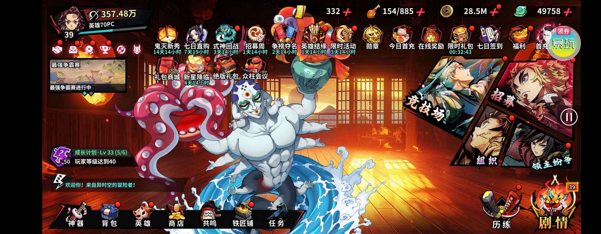 夺宝券*1、比武令*1、5星随机将魂*10(每个账号限领一次)