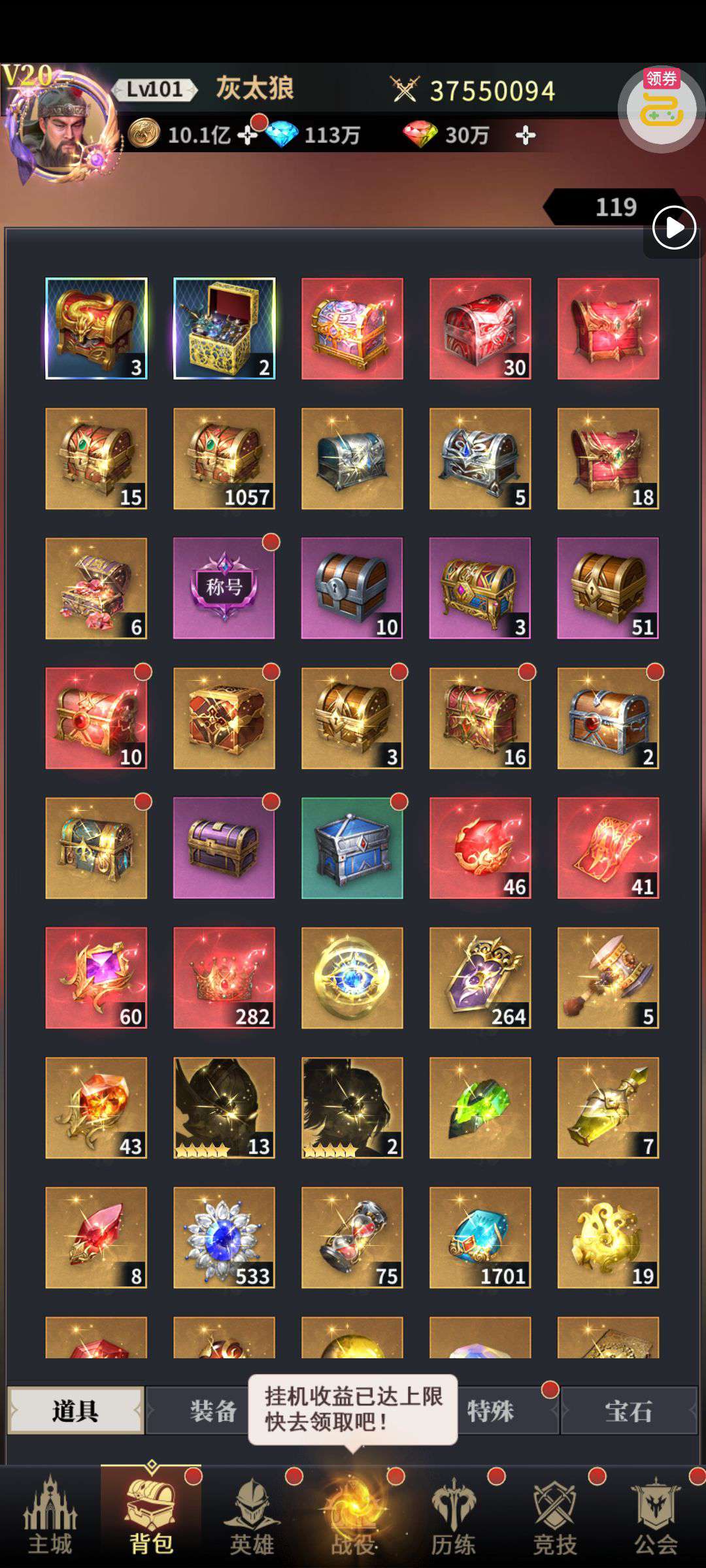 夺宝券*1、比武令*1、5星随机将魂*10(每个账号限领一次)