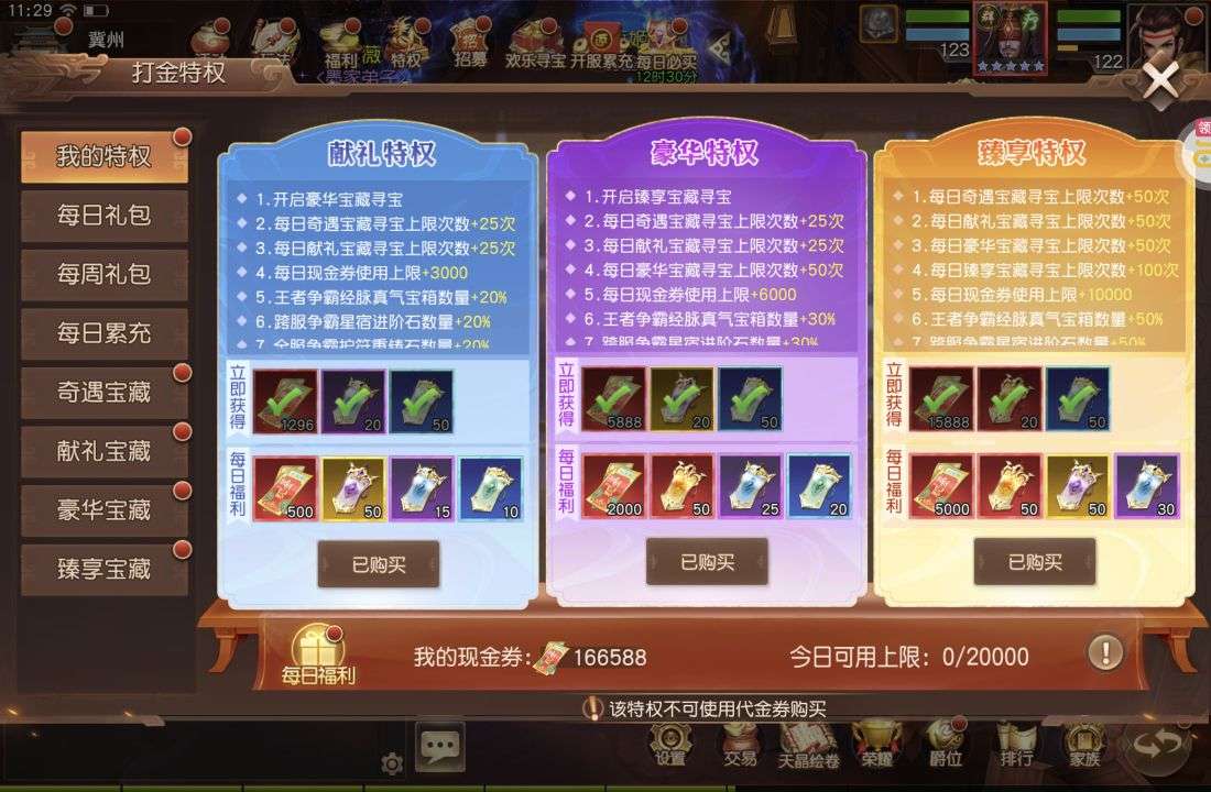 夺宝券*1、比武令*1、5星随机将魂*10(每个账号限领一次)