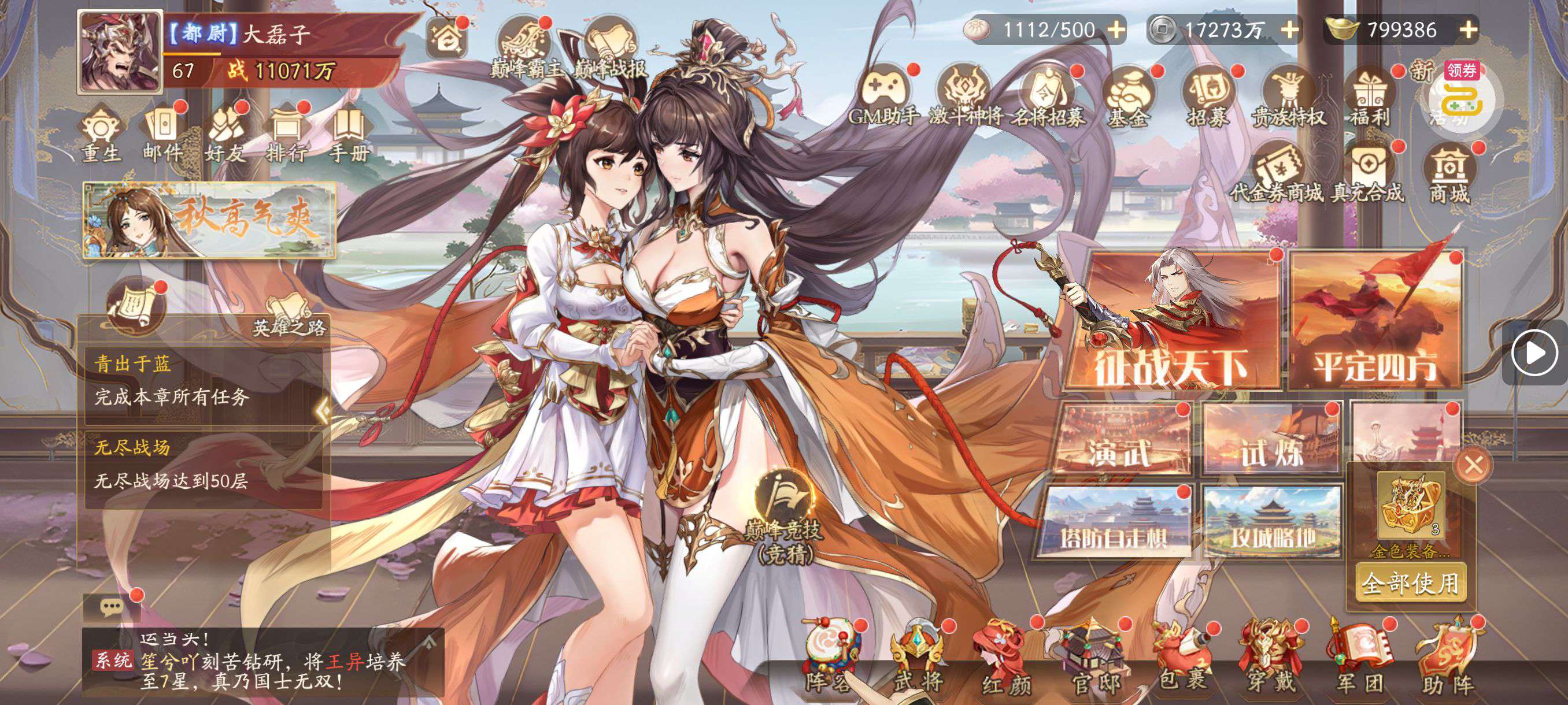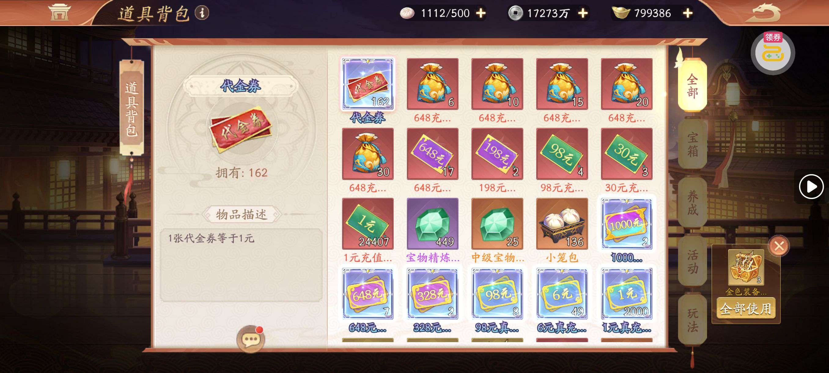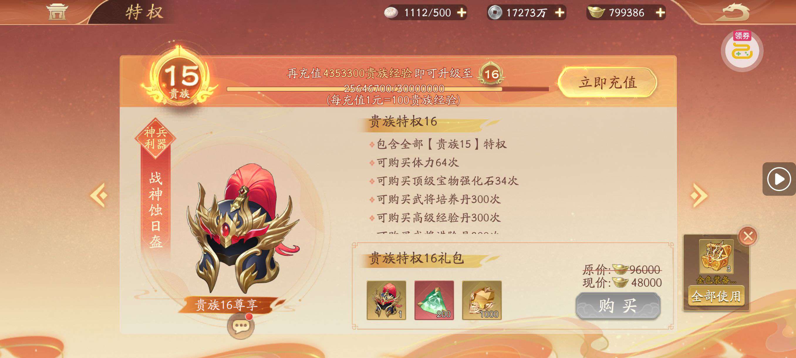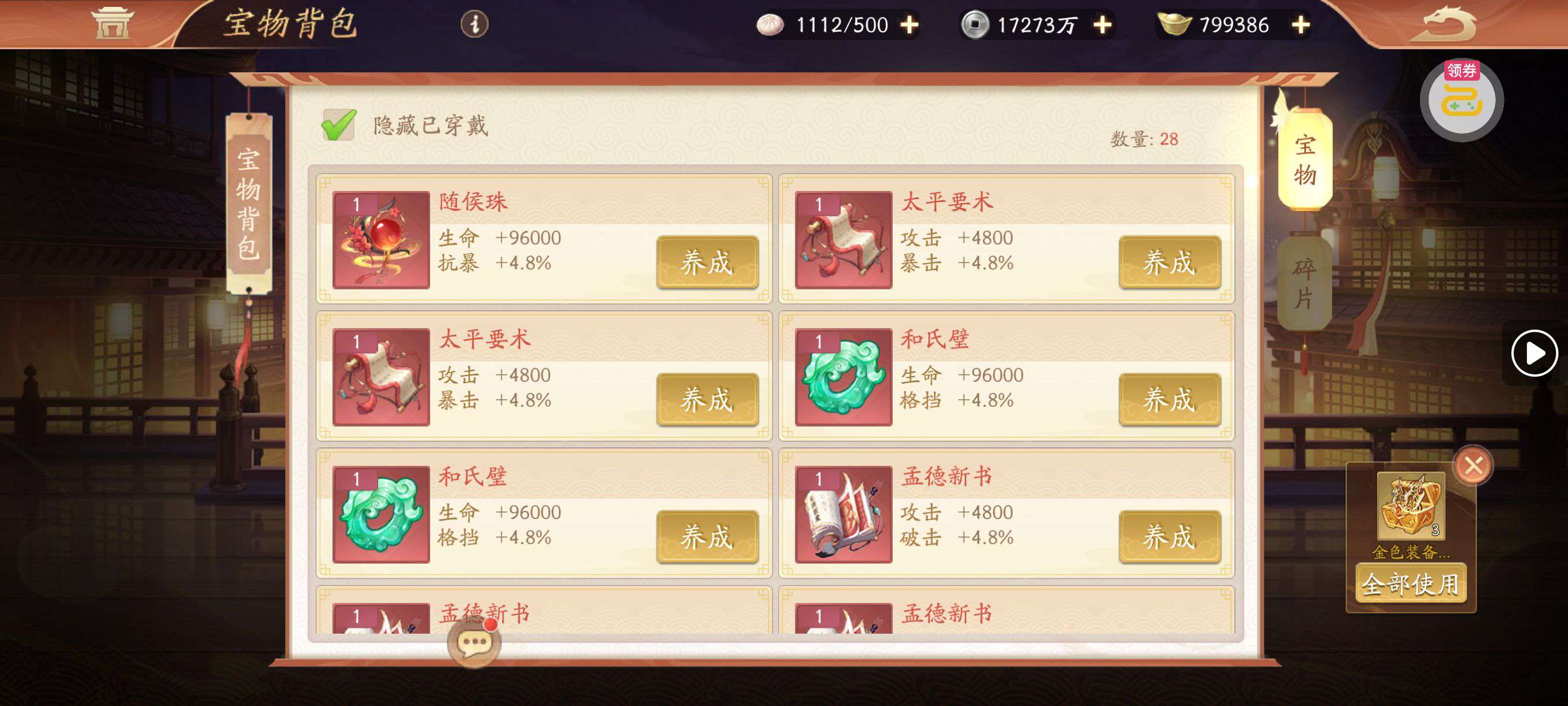 夺宝券*1、比武令*1、5星随机将魂*10(每个账号限领一次)