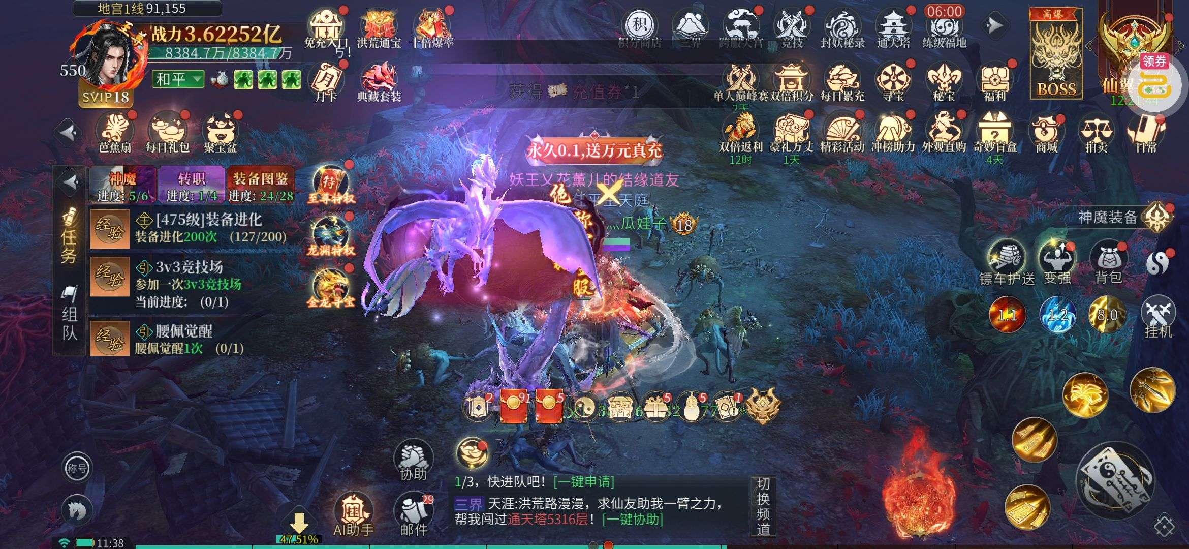 《出击吧师兄》公益服手游BOSS光柱爆满屏,新版神器等你来战!