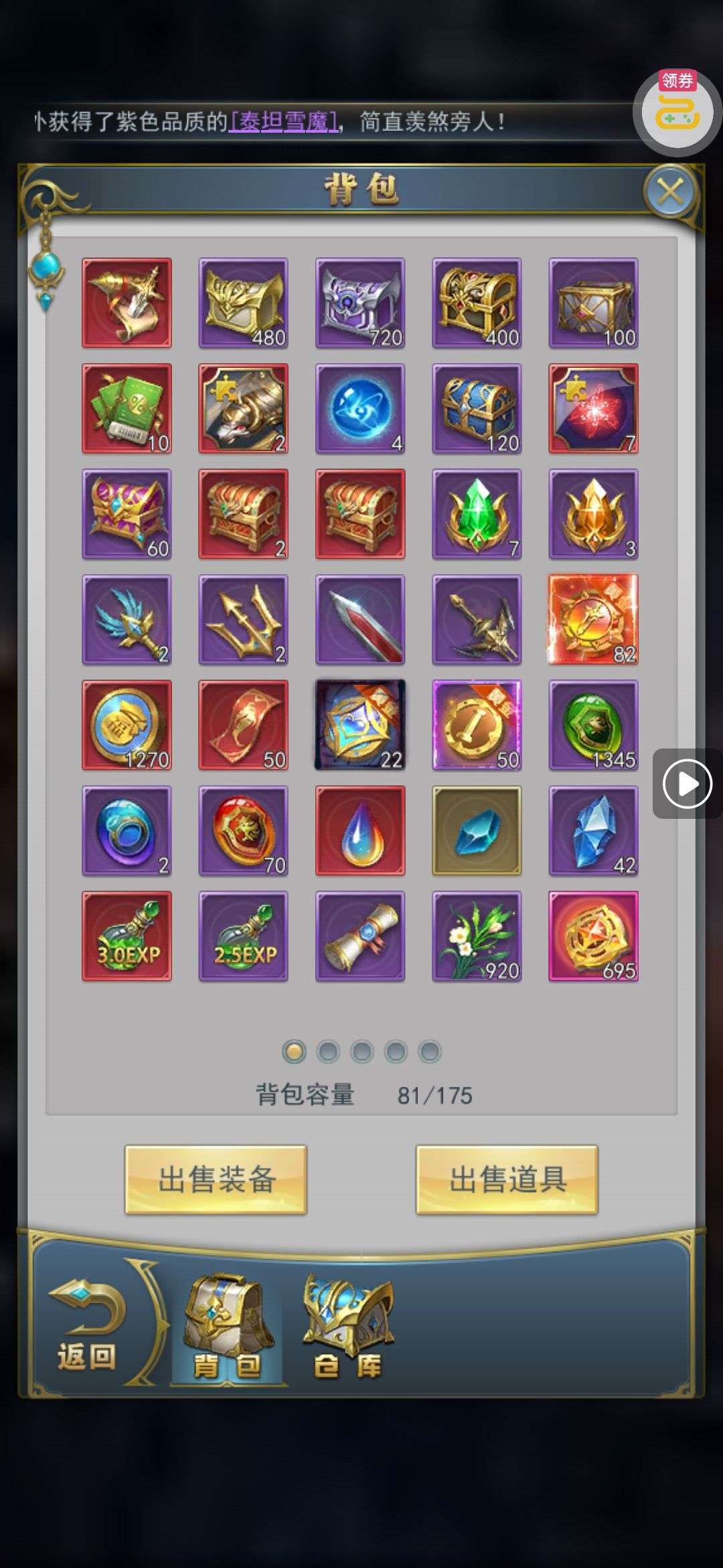夺宝券*1、比武令*1、5星随机将魂*10(每个账号限领一次)