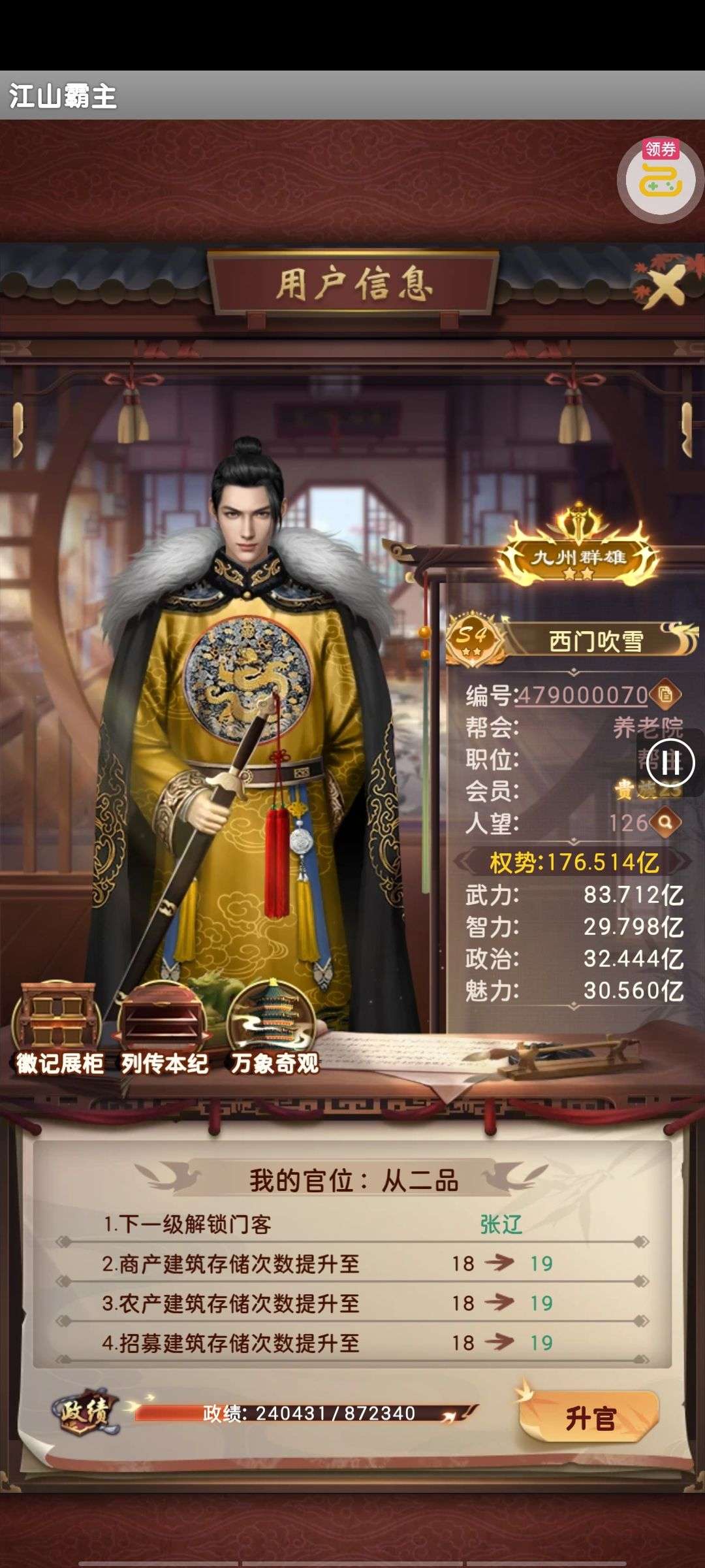 夺宝券*1、比武令*1、5星随机将魂*10(每个账号限领一次)
