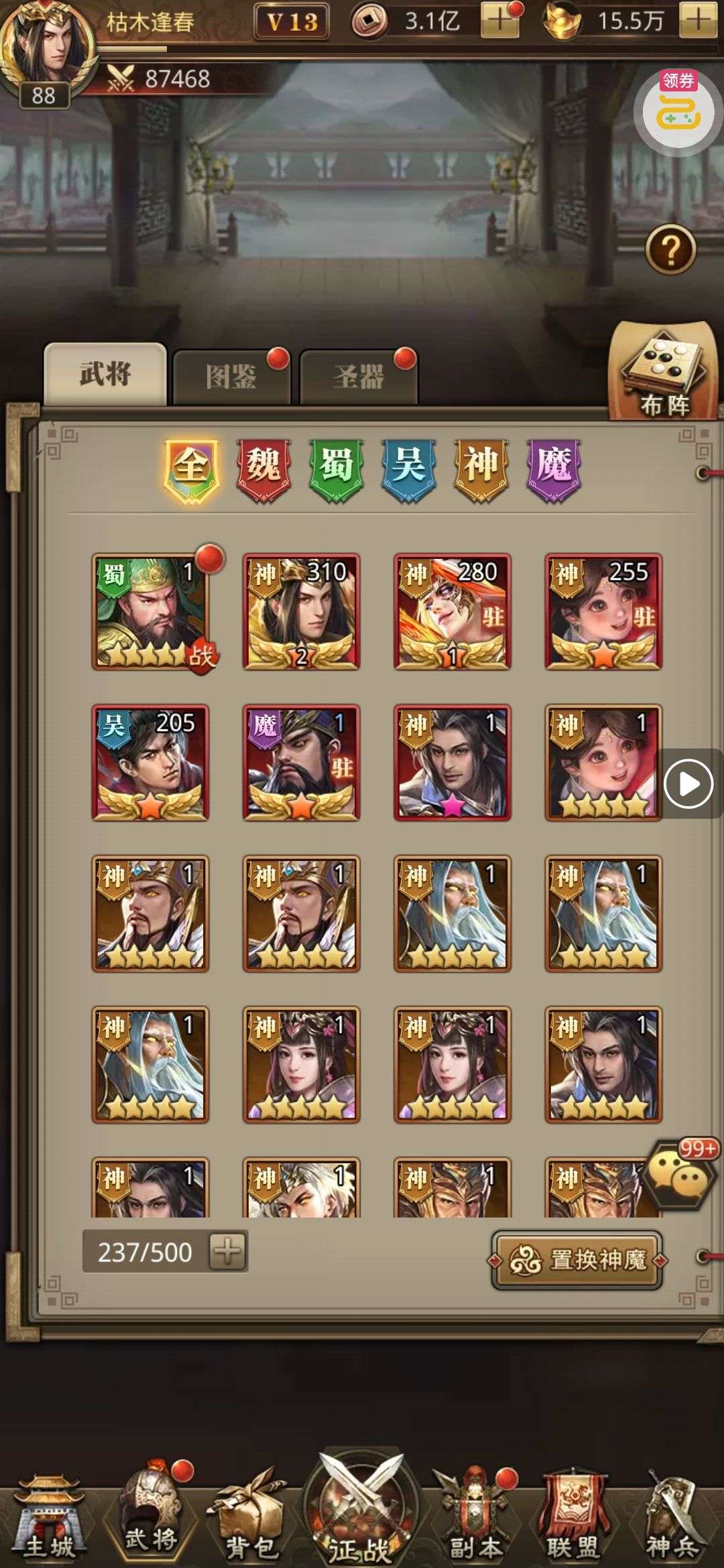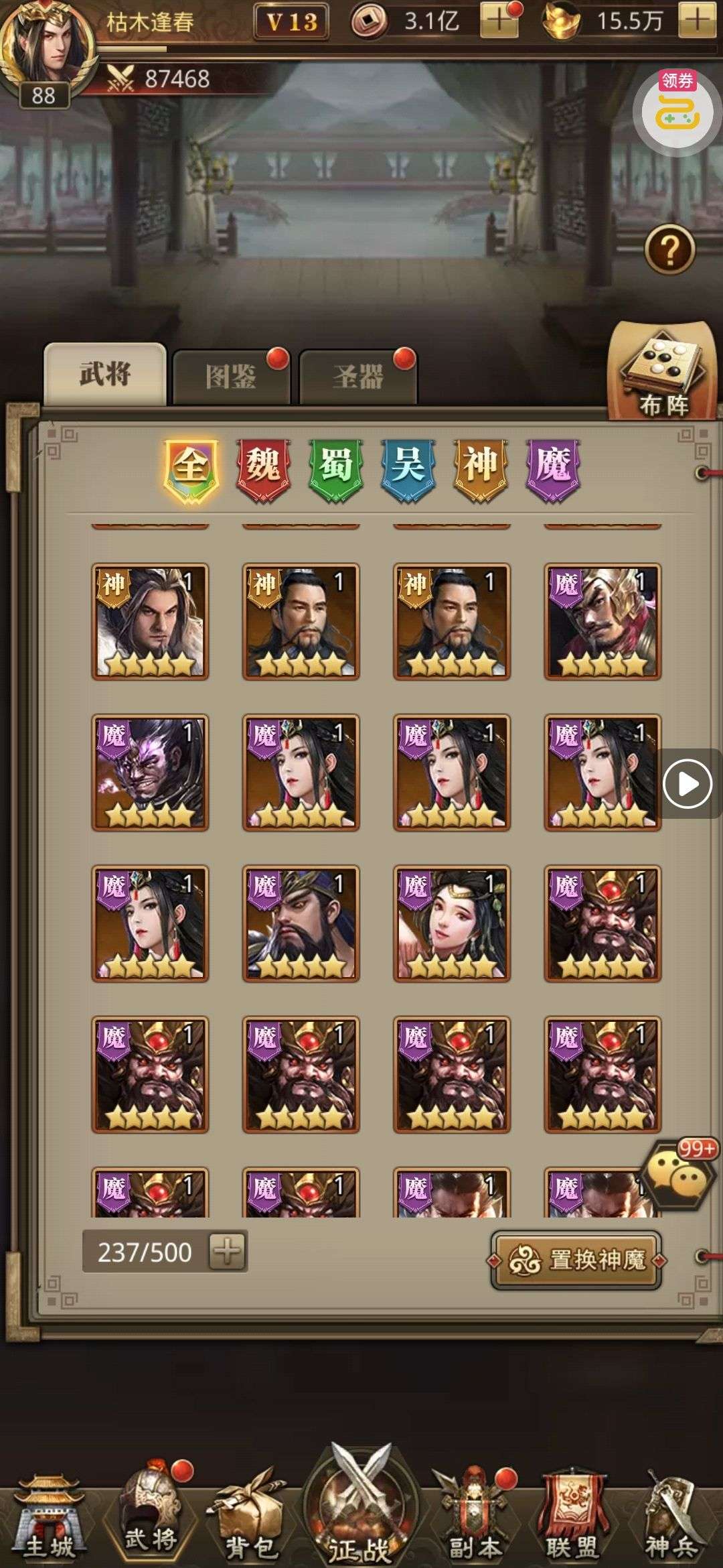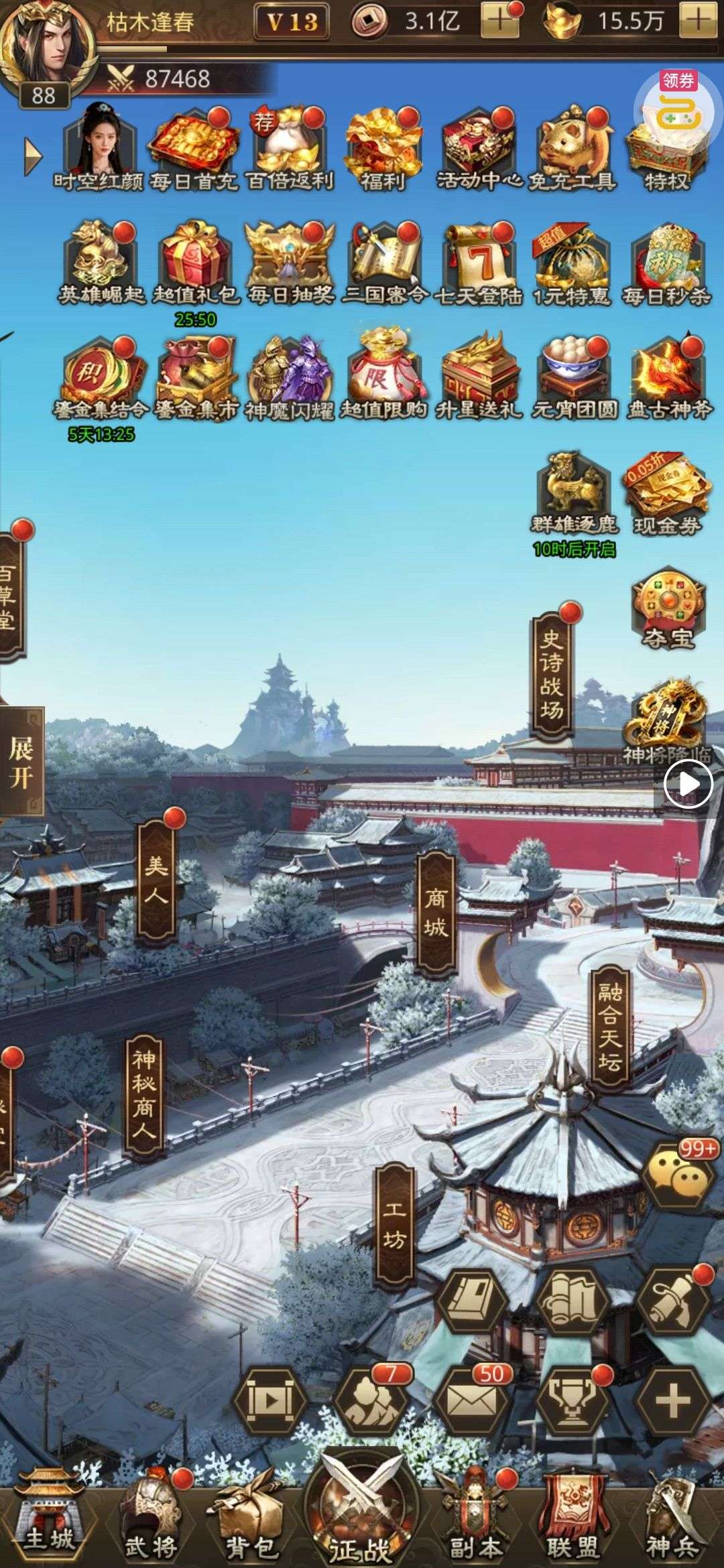 夺宝券*1、比武令*1、5星随机将魂*10(每个账号限领一次)