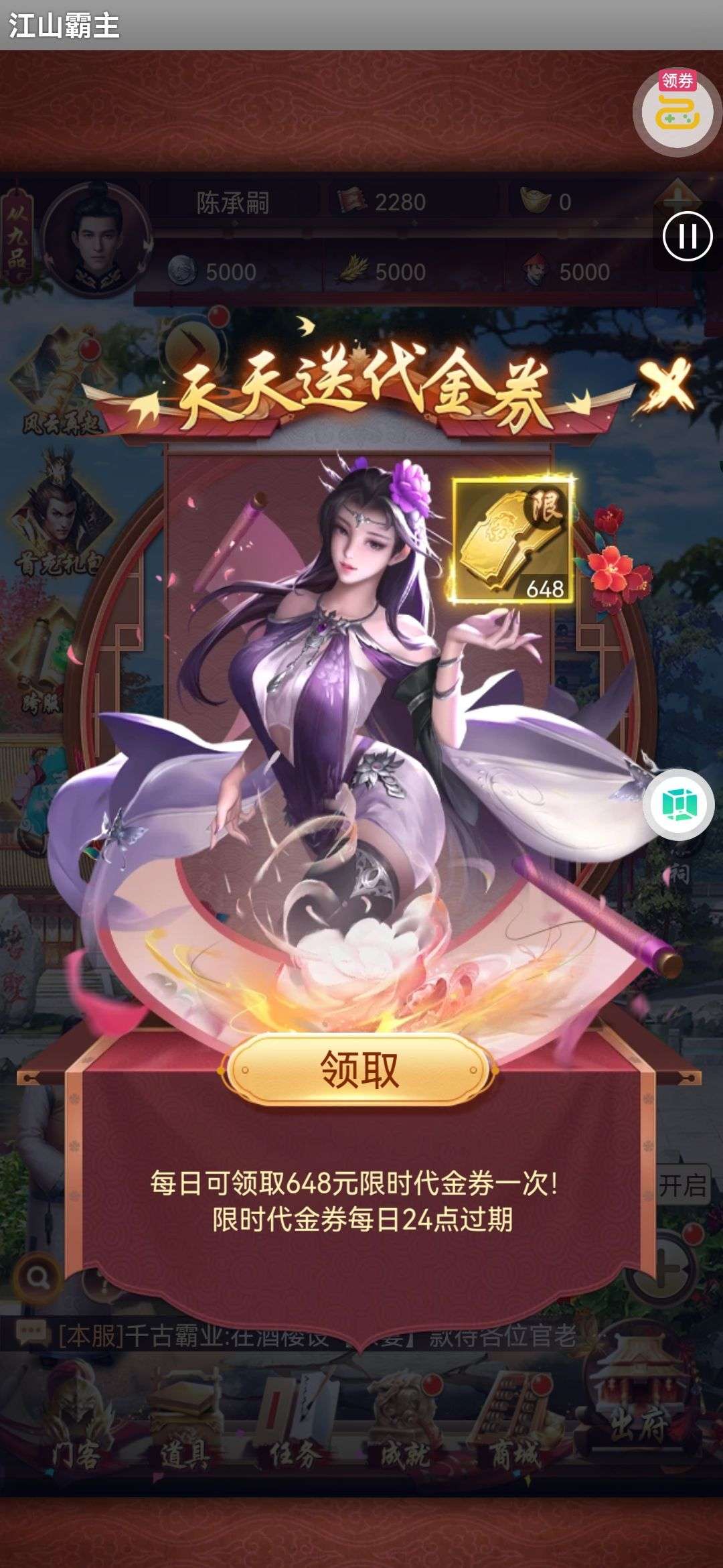 夺宝券*1、比武令*1、5星随机将魂*10(每个账号限领一次)