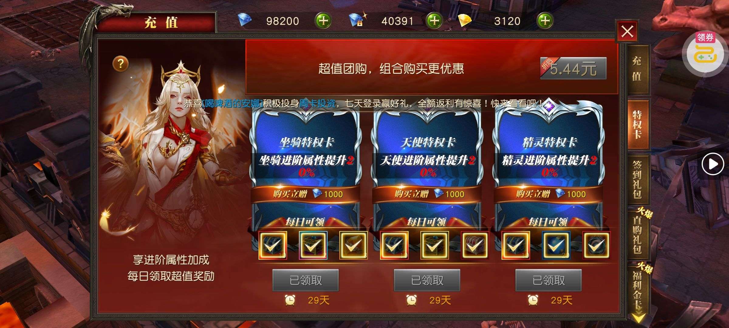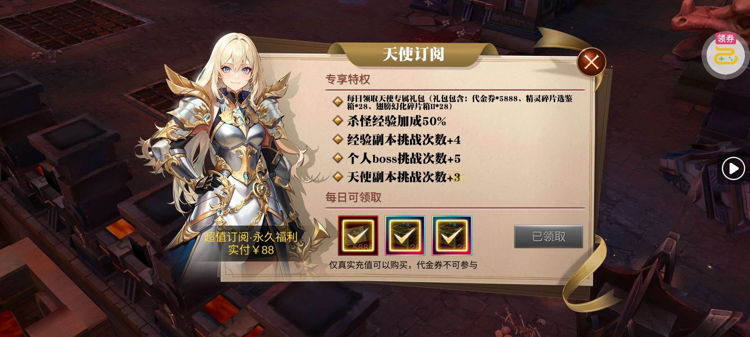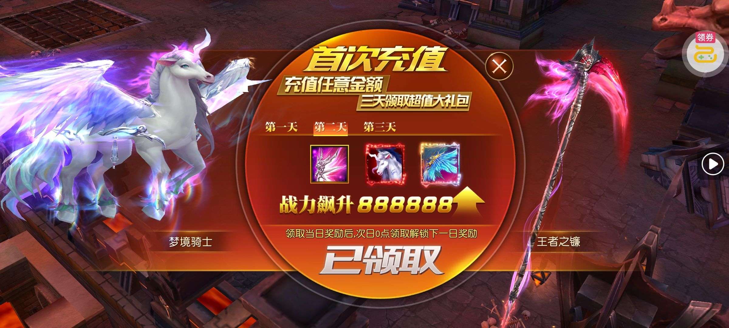 强化药剂*200、钻石招募币*20、金币*50W(每个账号限领一次)