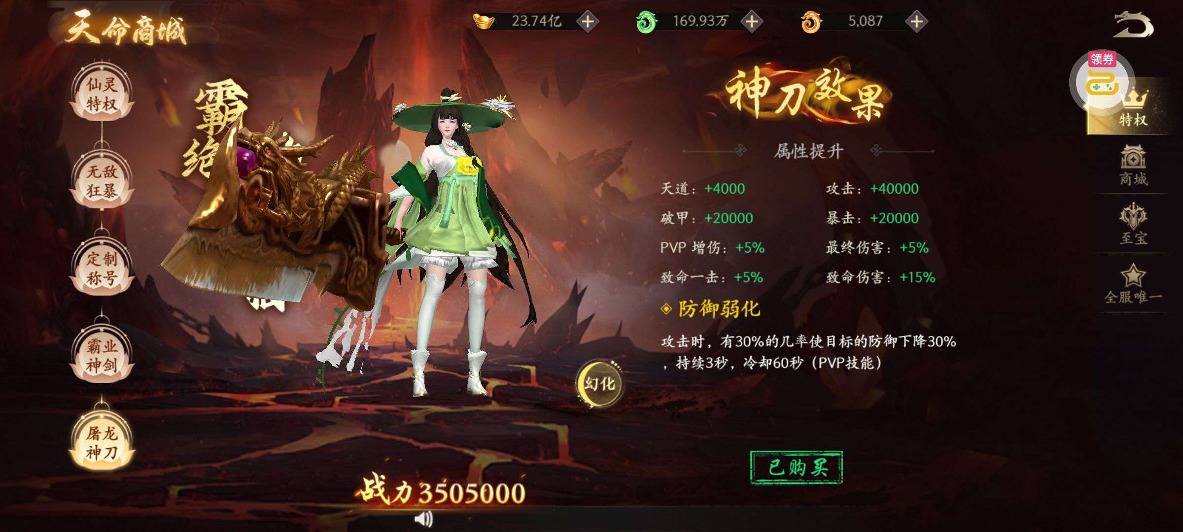 夺宝券*1、比武令*1、5星随机将魂*10(每个账号限领一次)