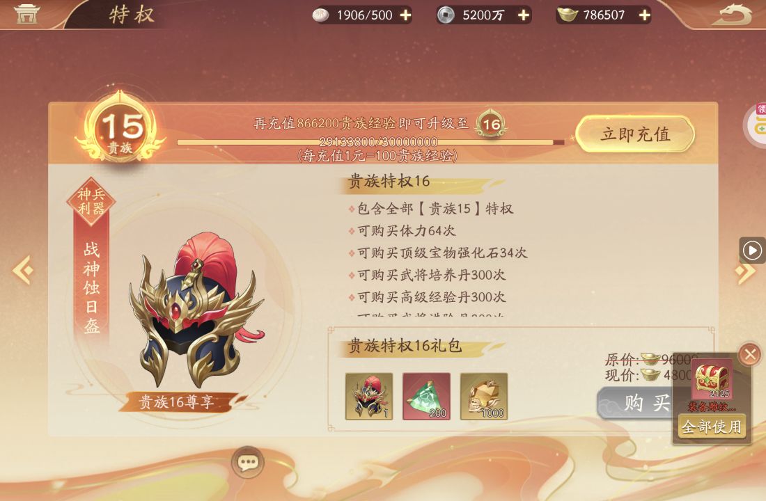 该角色累计充值3459.88元。 购买须知: 1.购买后支持回收或再次出售,不支持转区。 2.回收金额仅计算该小号购买后的充值金额,不计算购买前原有充值金额。 3.再次出售需等待购买72小时后,累充显示该小号总充值金额。