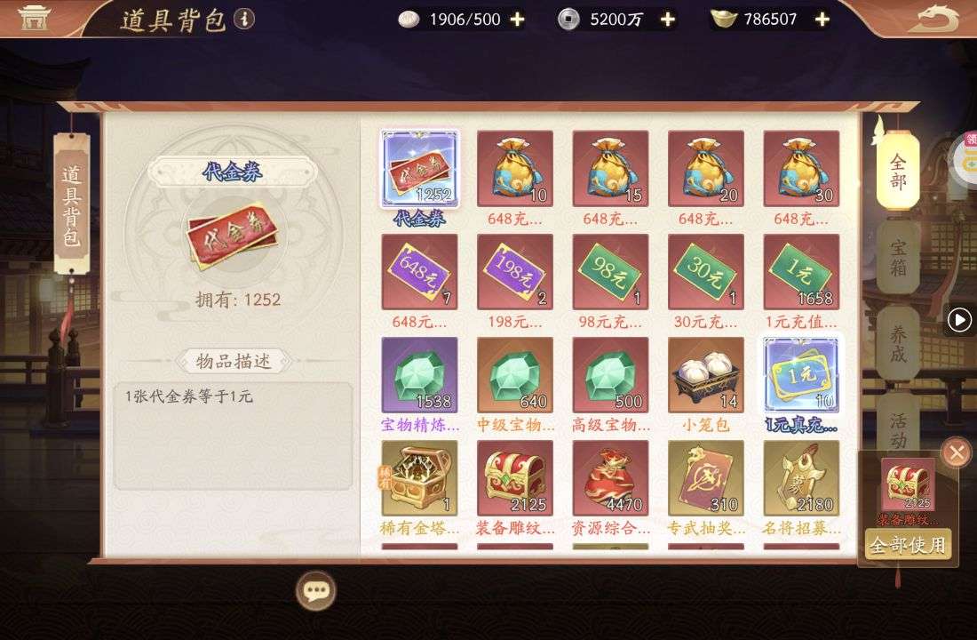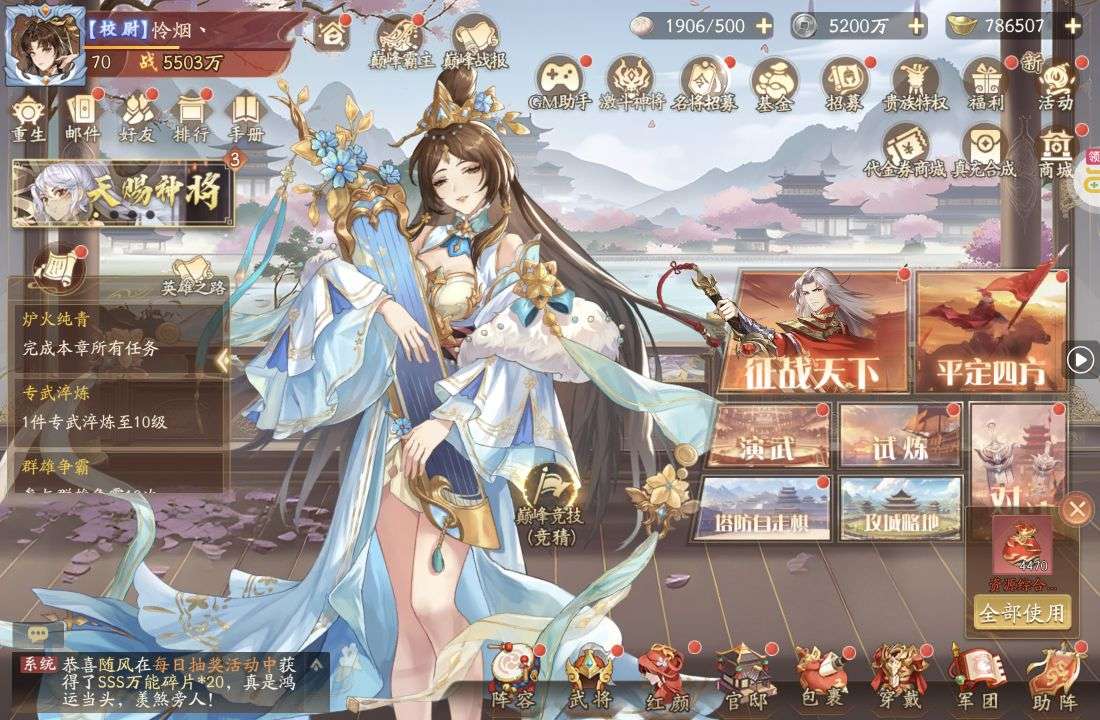 夺宝券*1、比武令*1、5星随机将魂*10(每个账号限领一次)