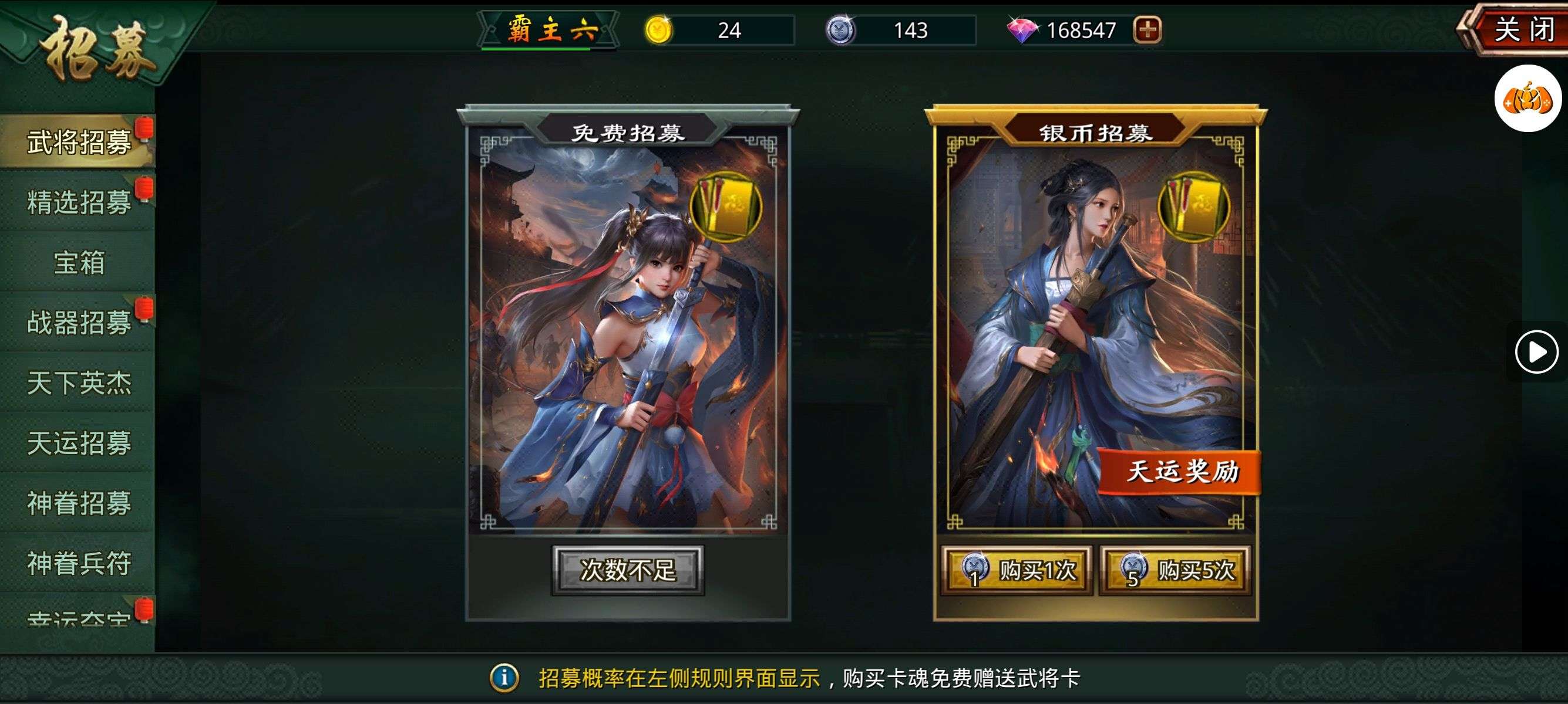 夺宝券*1、比武令*1、5星随机将魂*10(每个账号限领一次)