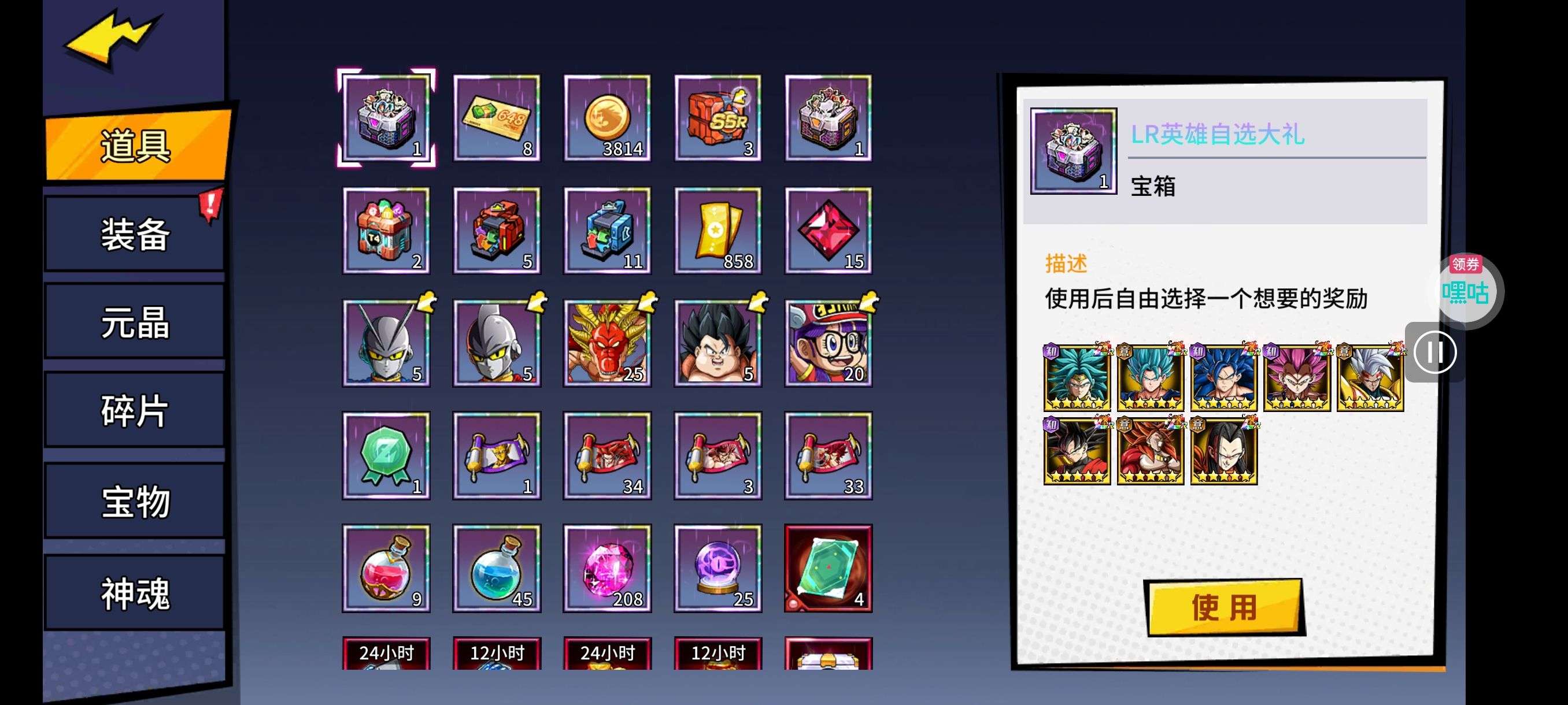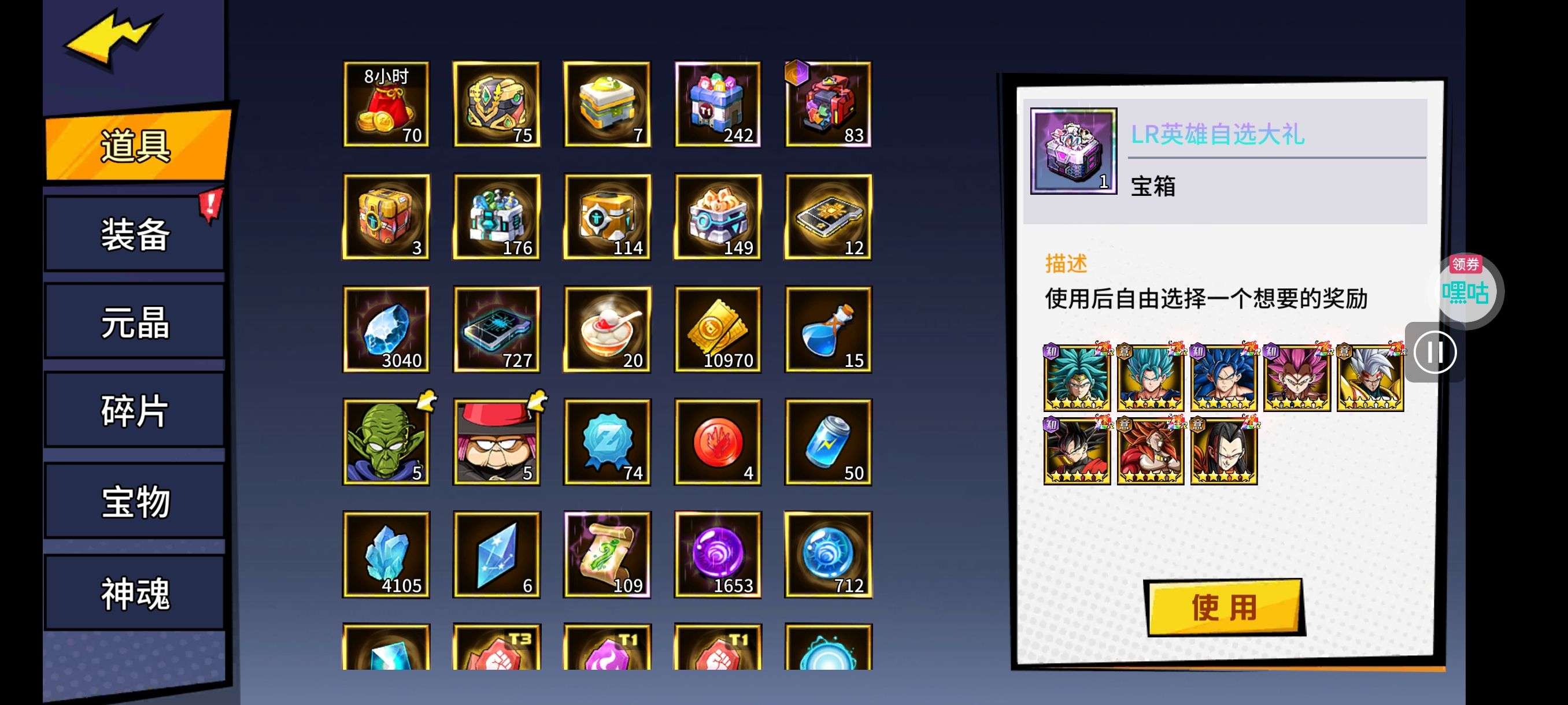 魂晶*888,魂师召唤券*10,武魂水晶*5(每个账号限领一次)