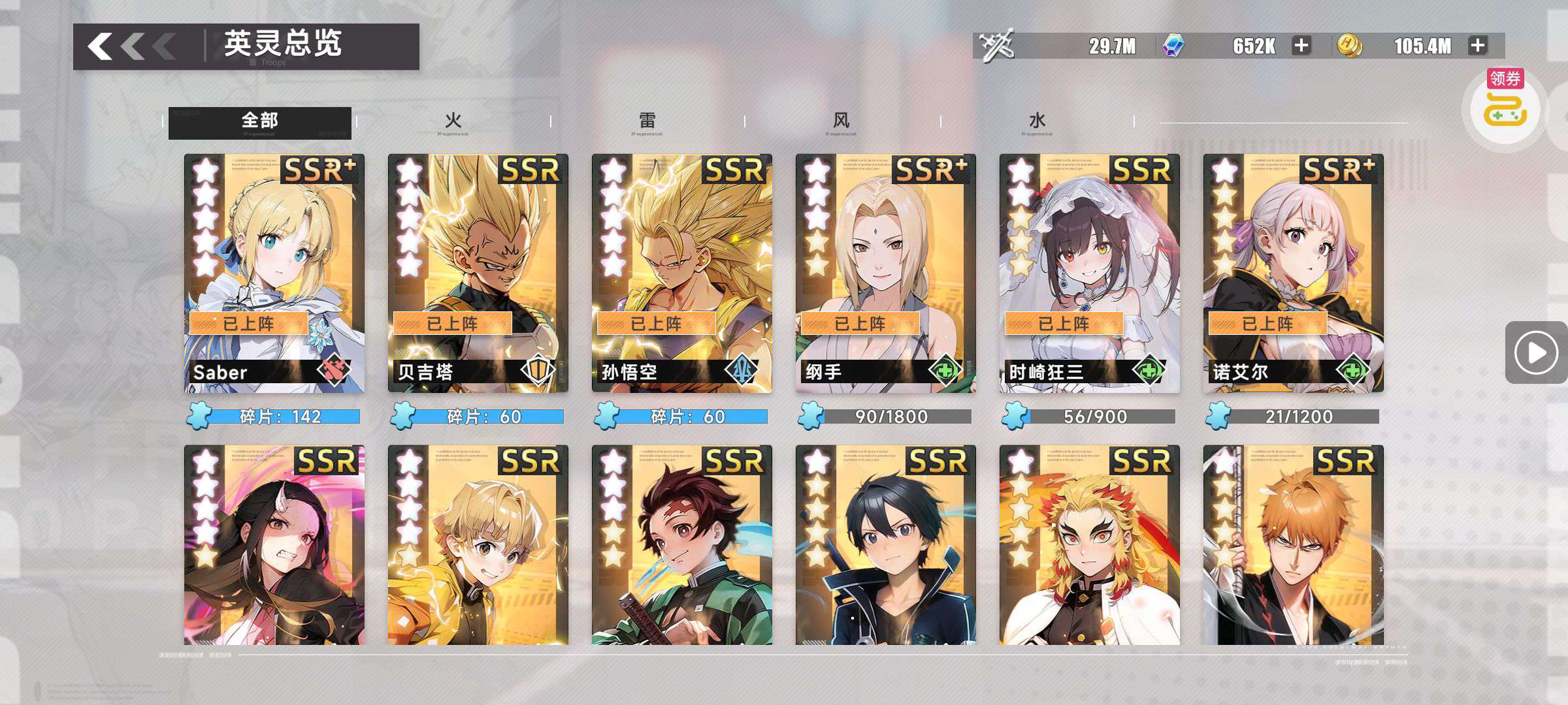 角色等级刚刚满级,还有2万神渝币,有夏娜,金木研,纳兹的专属魂器,限时魂器也有700抽,仓库里面东西也很多可砍价