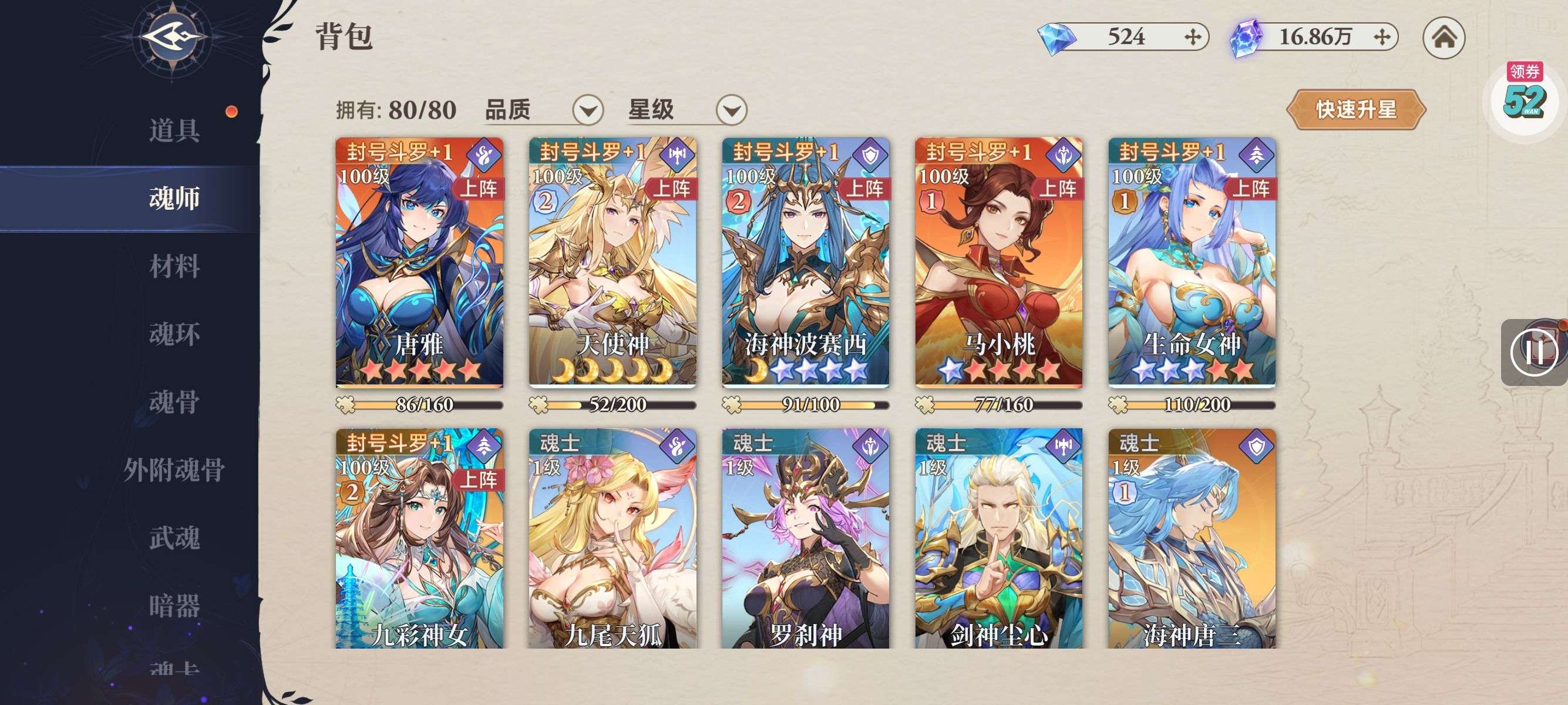 魂晶*888,魂师召唤券*10,武魂水晶*5(每个账号限领一次)