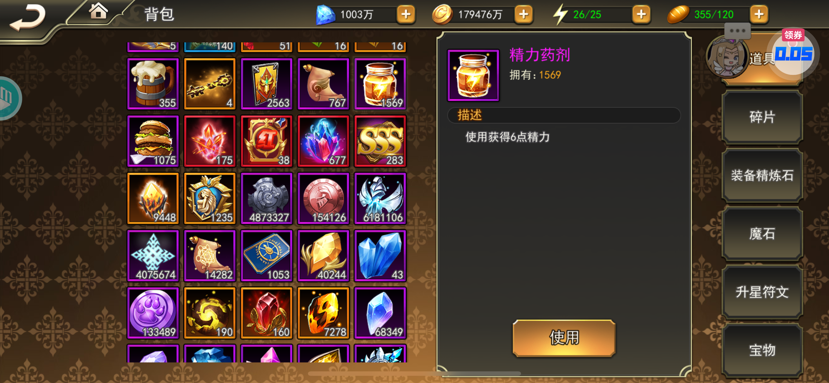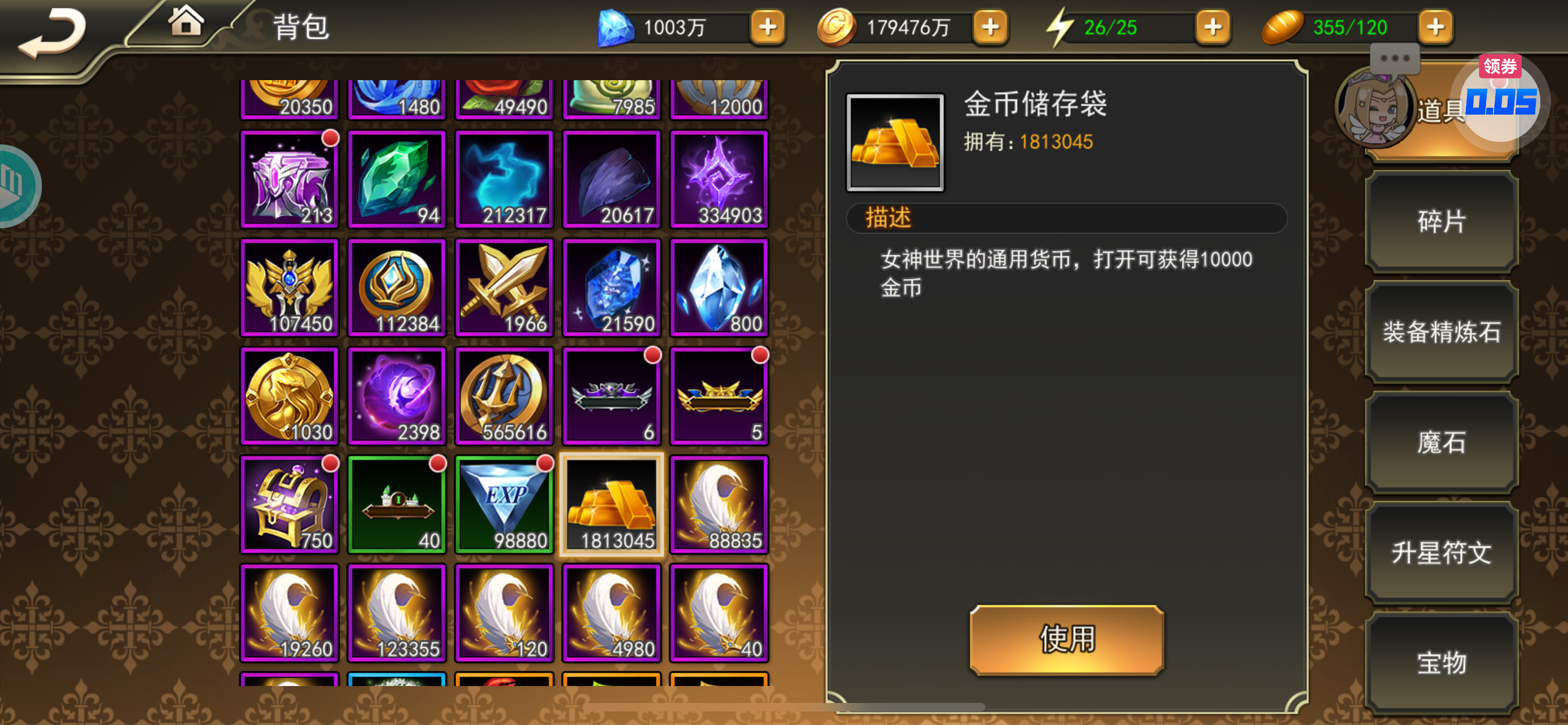 钻石还有 2000 万,一千万没领,根本花不完,金币材料一大堆,用不完。根本花不完。。。自己看,没时间折腾了。养老极品号