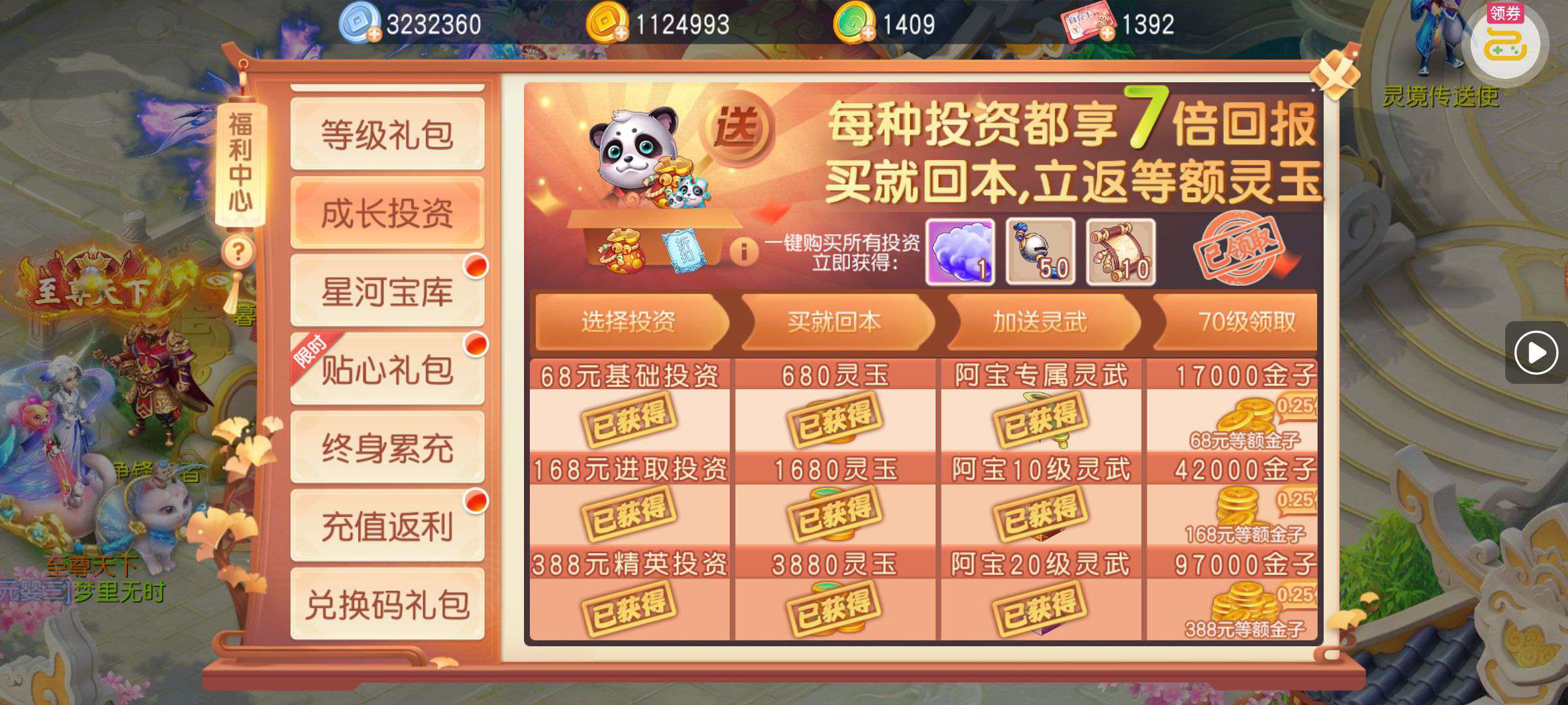 夺宝券*1、比武令*1、5星随机将魂*10(每个账号限领一次)