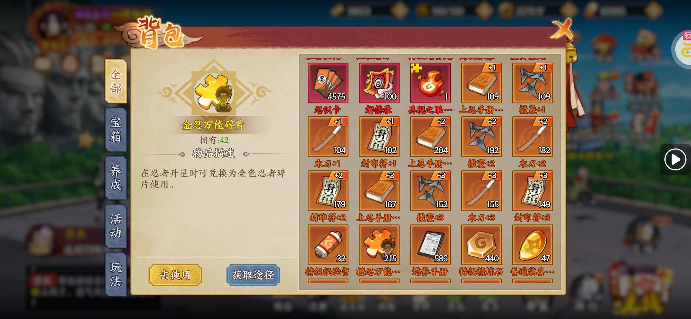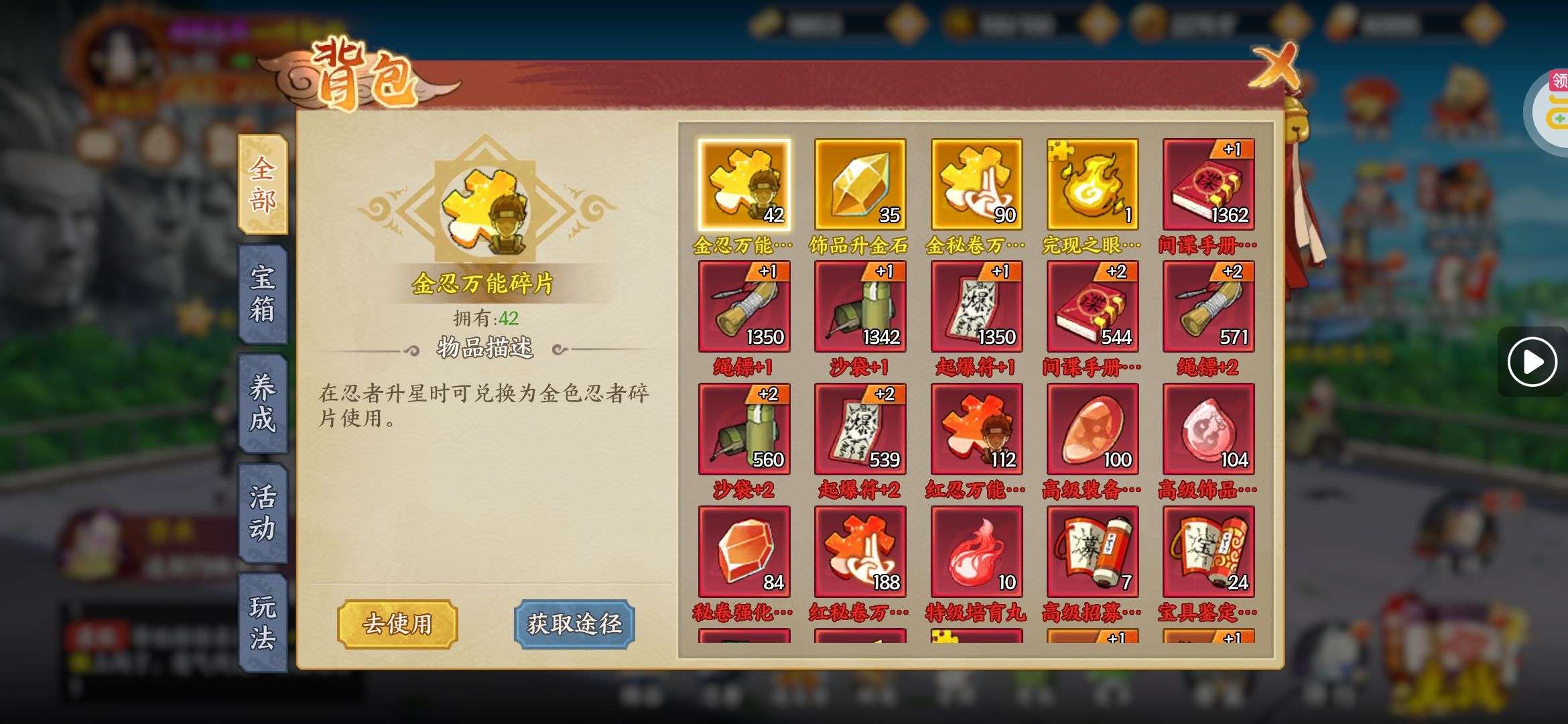 战斗力第一,164亿战斗力。季卡会员,有赤金忍者小南,兜;紫金全套忍者。账号金币有100万。养成材料n+