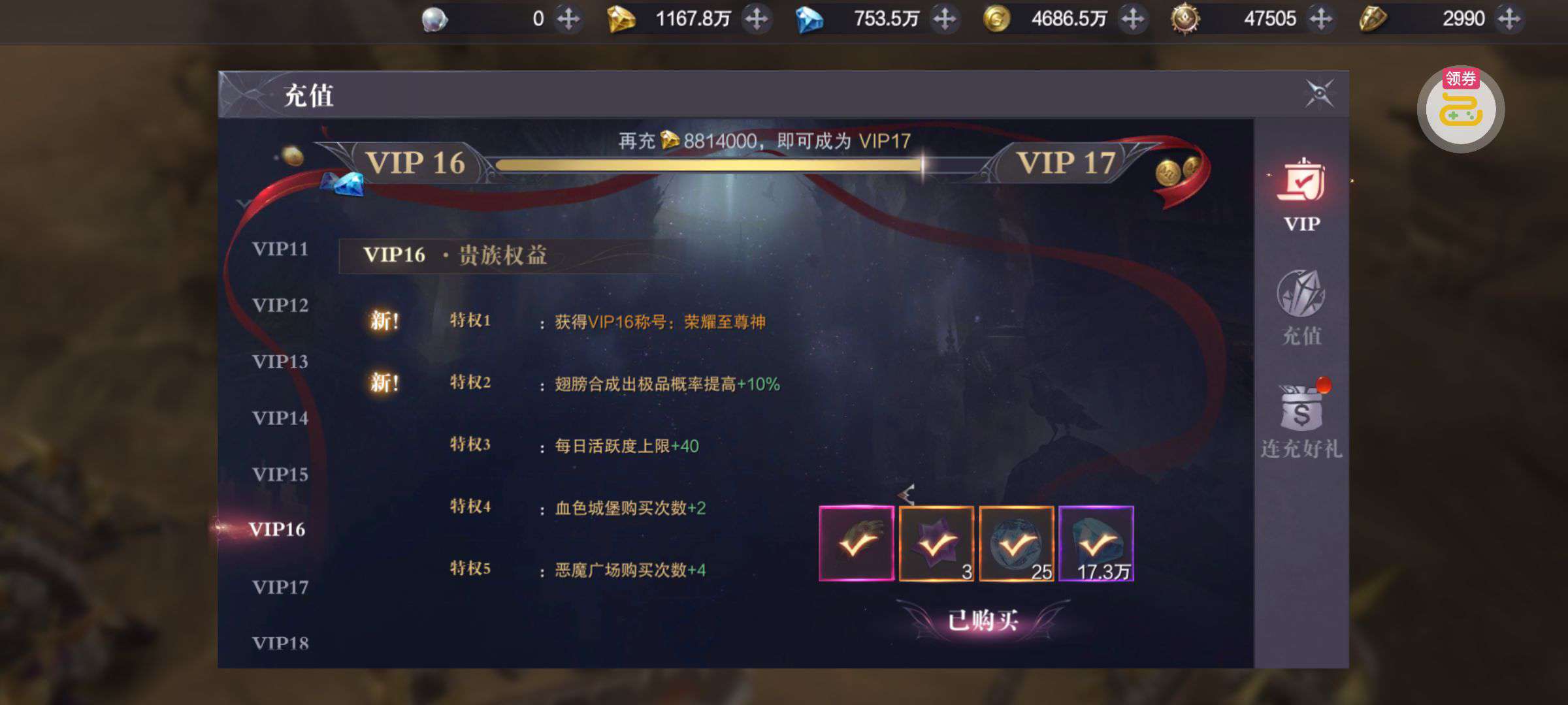 强化药剂*200、钻石招募币*20、金币*50W(每个账号限领一次)